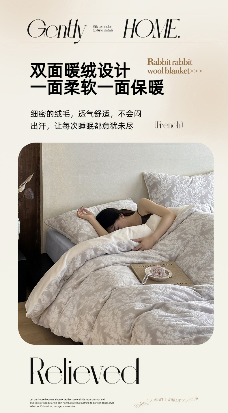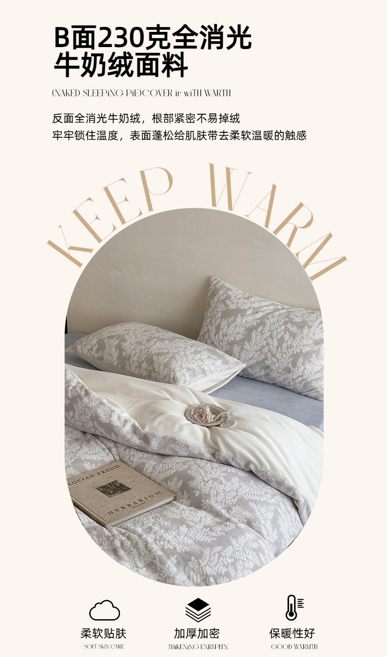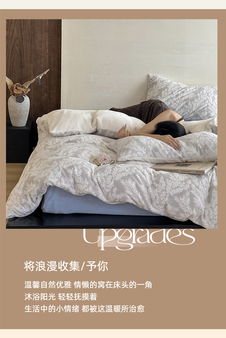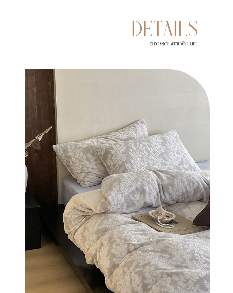 商品名称:玛奇朵 2025新款秋冬新品230克工艺立体雕花牛奶绒四件套 花满溪系列 花满溪-灰