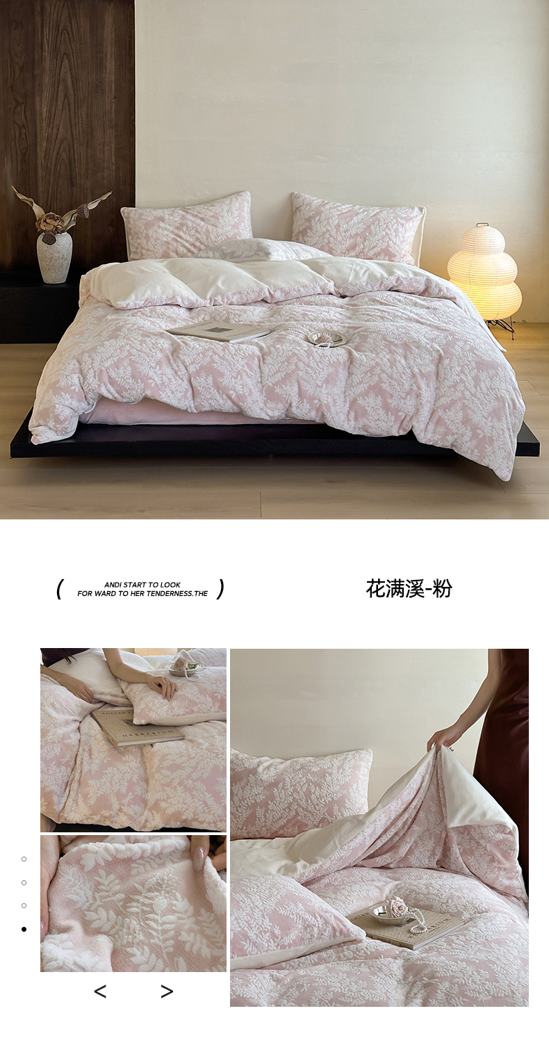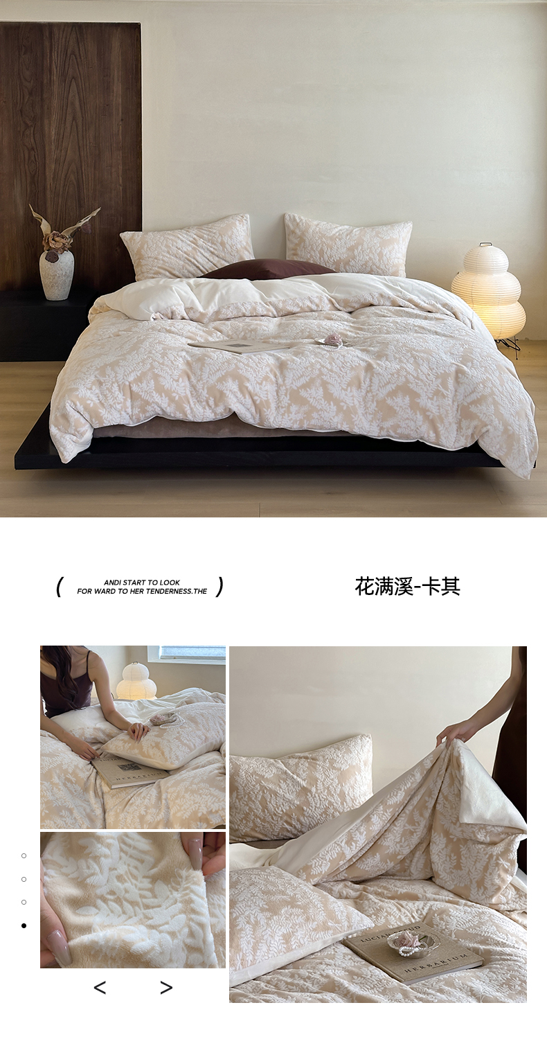(总)玛奇朵 2025新款秋冬新品230克工艺立体雕花牛奶绒四件套 花满溪系列,花满溪-粉,花满溪-灰,花满溪-卡其