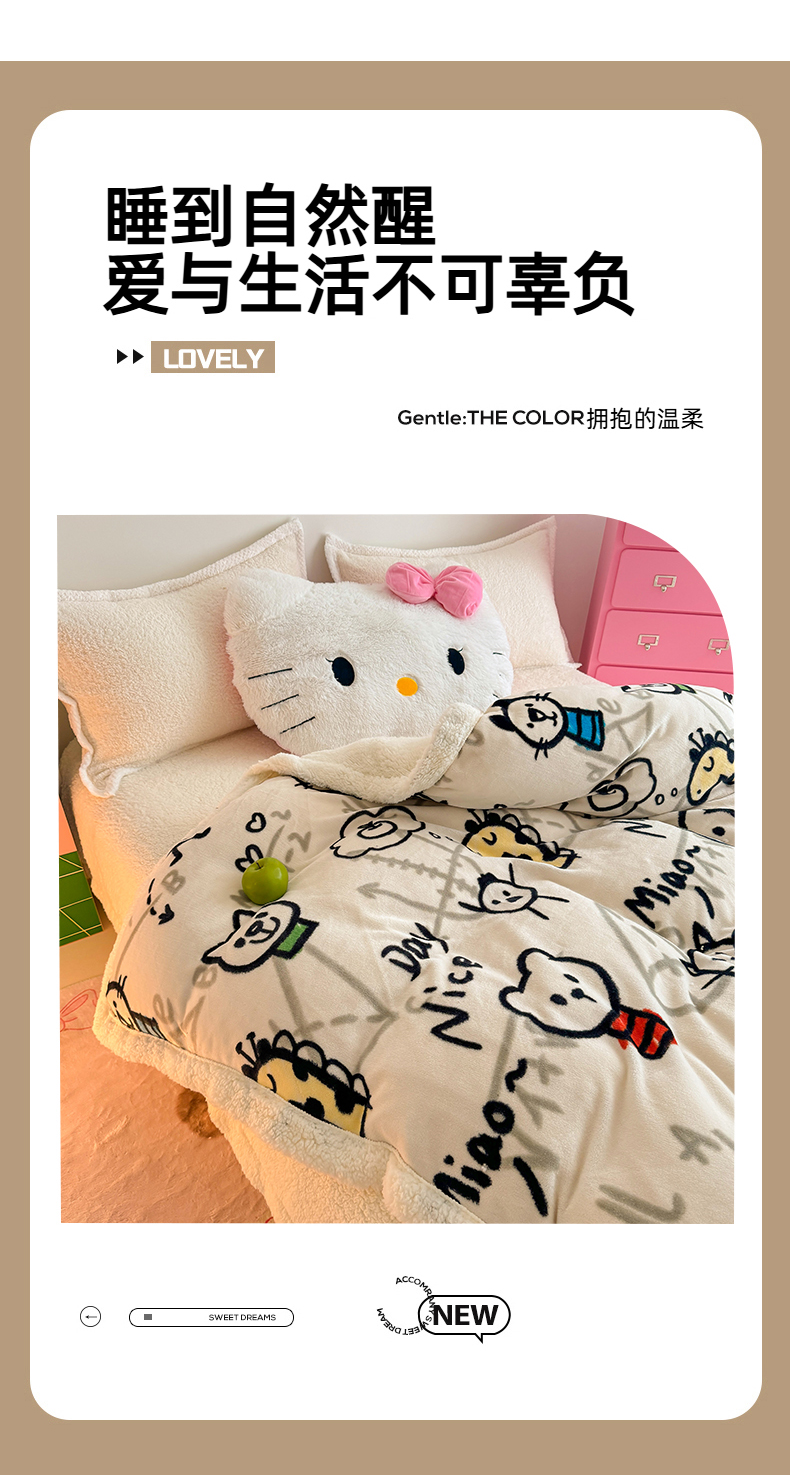 艾特你 2025新款多功能羊羔绒牛奶绒单毛毯单被套 组合