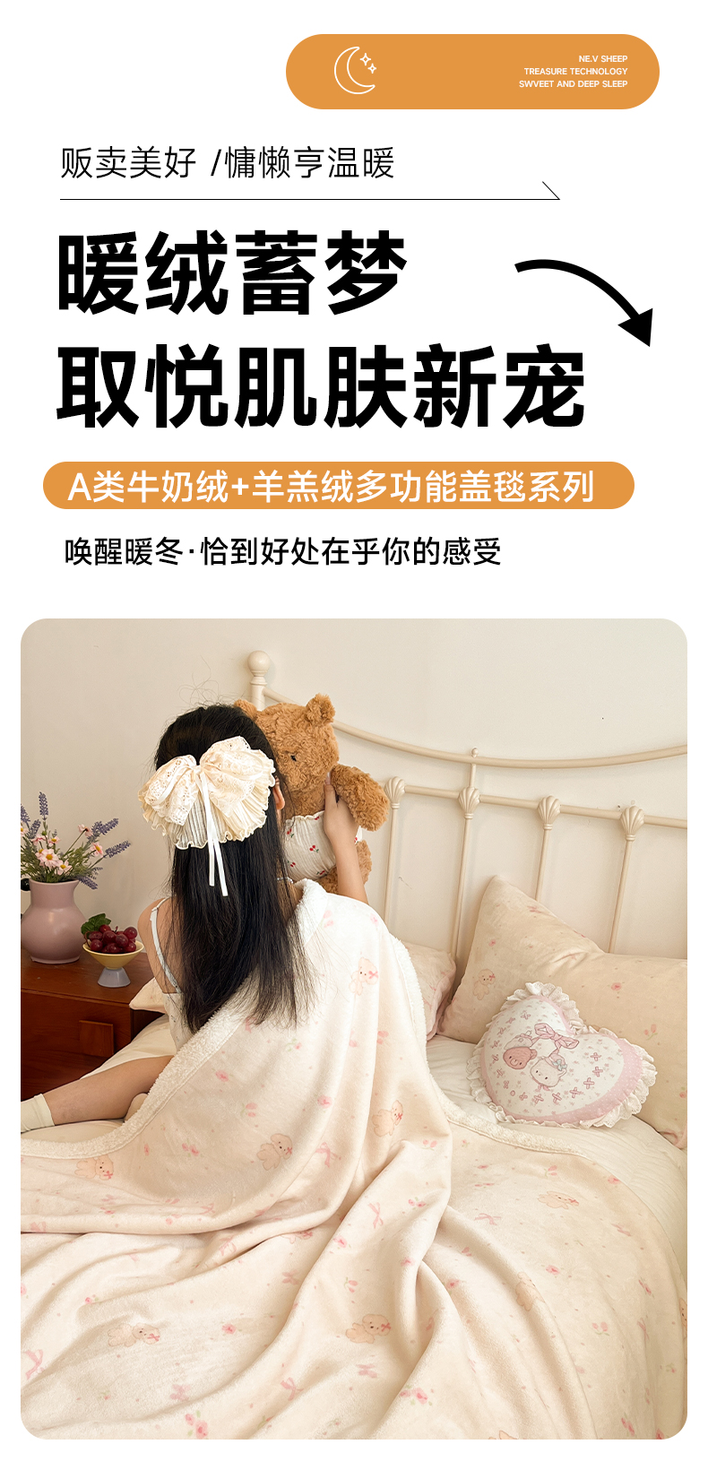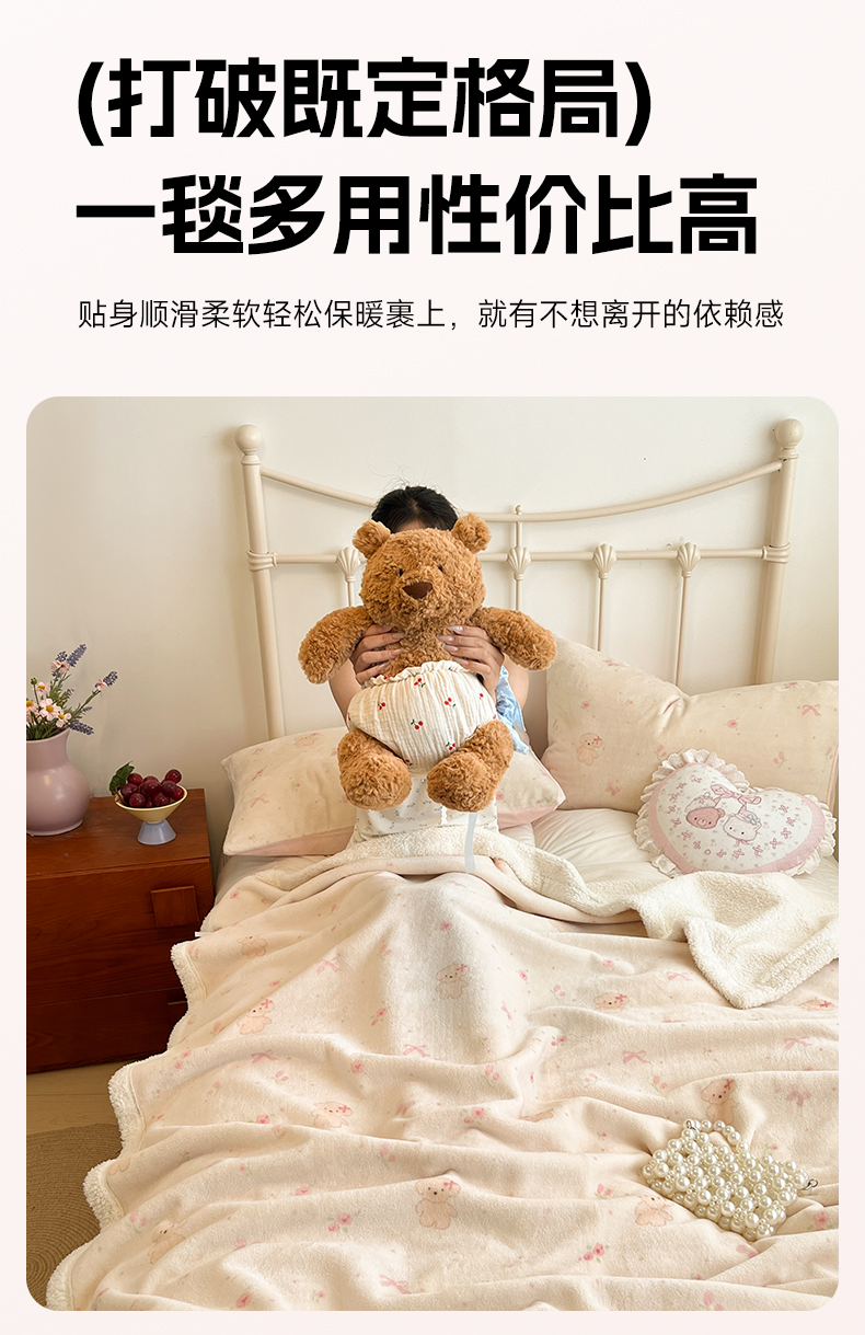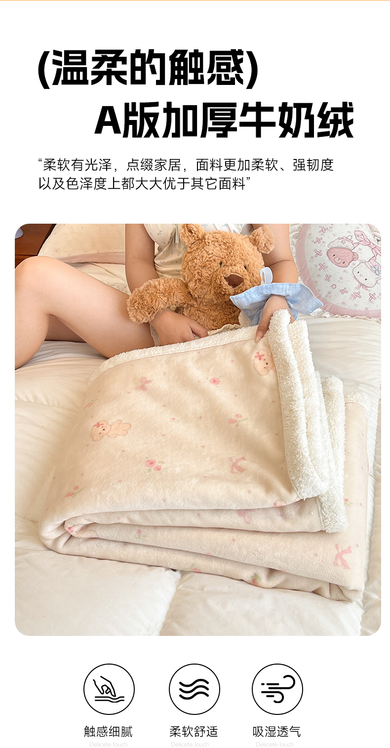 商品名称:红嘴企鹅 2025新款A类ins风卡通可爱加厚牛奶绒羊羔绒毛毯毯子办公室沙发儿童空调盖毯午休毯 可爱比熊