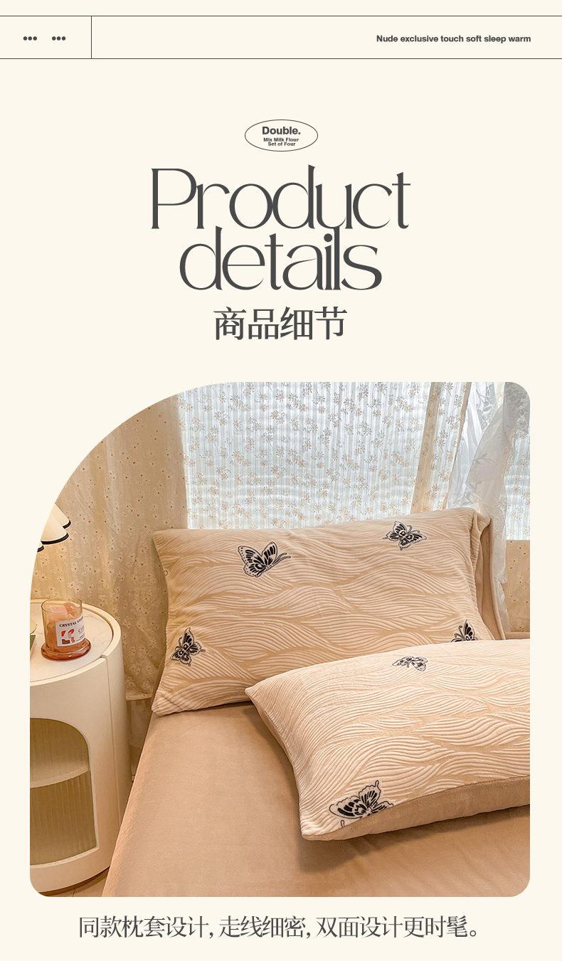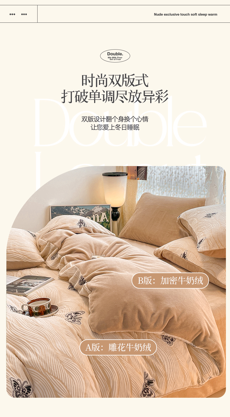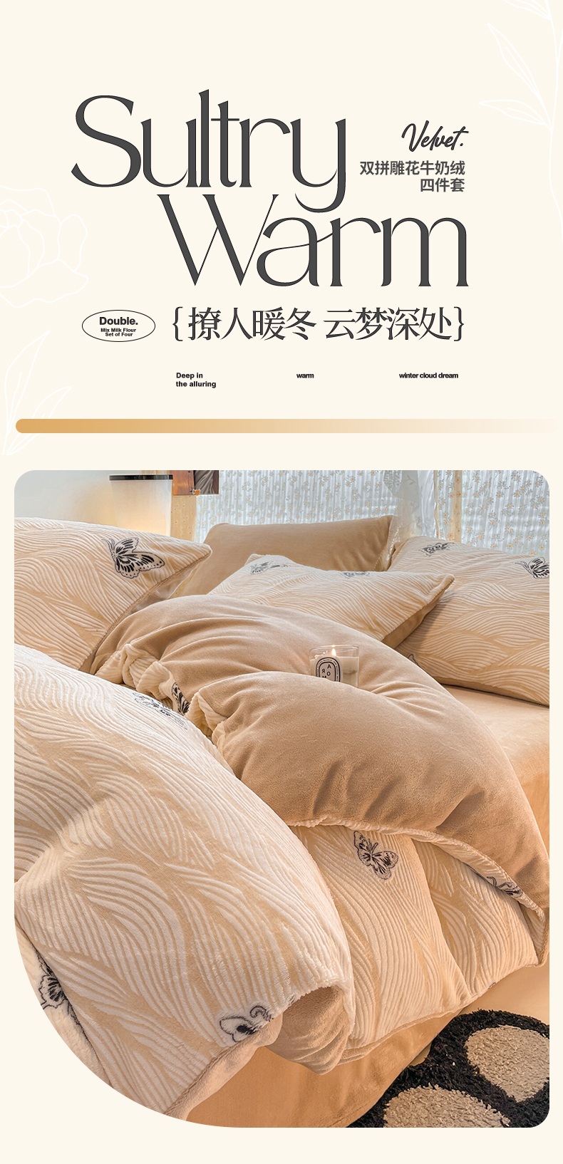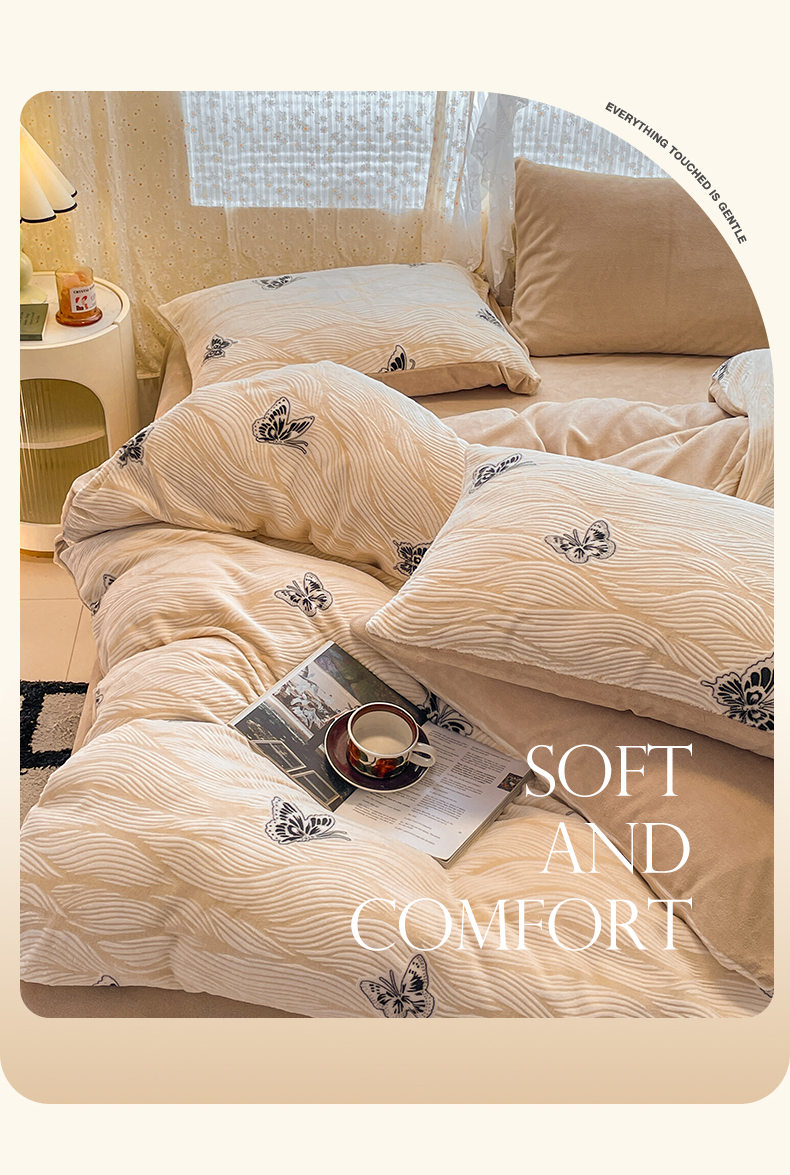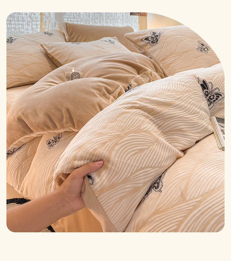 当前位置: 91家纺网 > 商品网购 > 床品套件 > 四件套 > 牛奶绒四件套 > 小叮当家纺仓储工厂店 2025新款高克重230克雕花牛奶绒四件套 水漾蝶舞-卡其