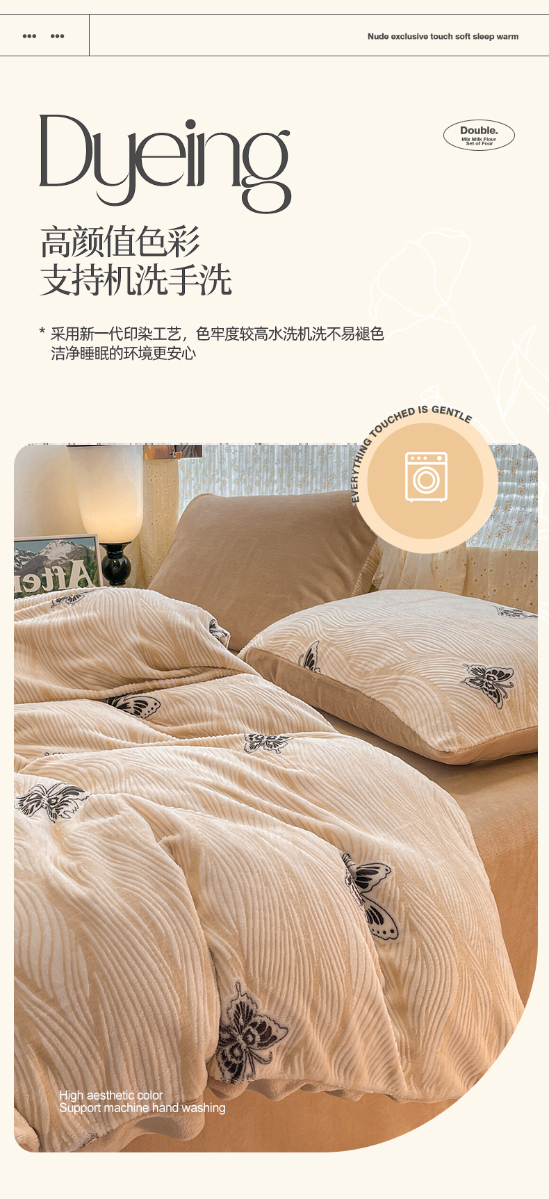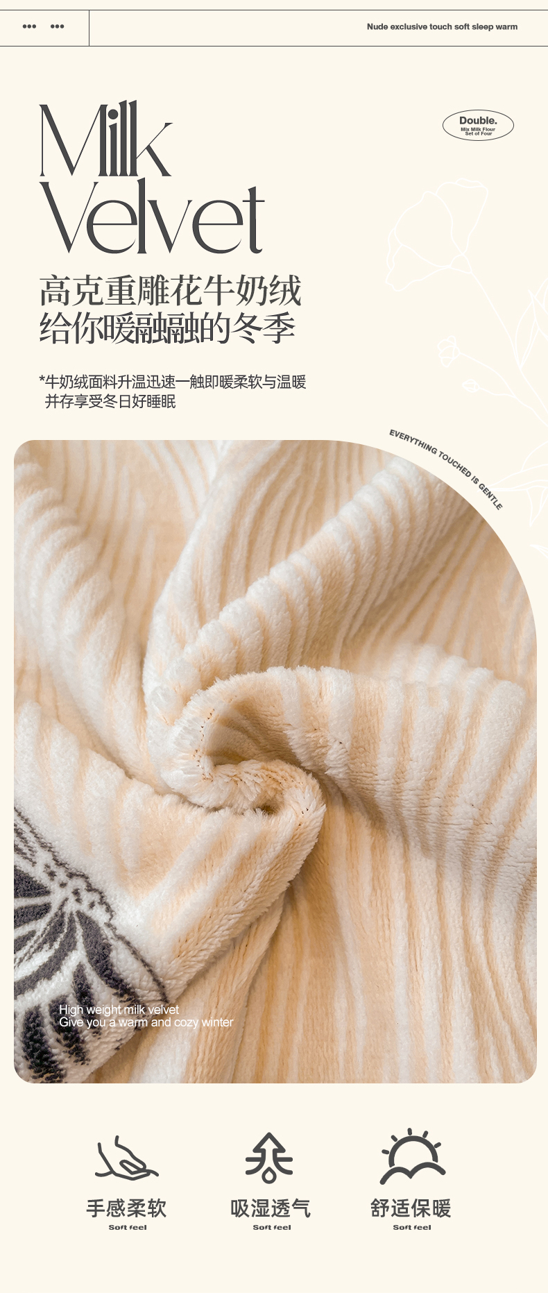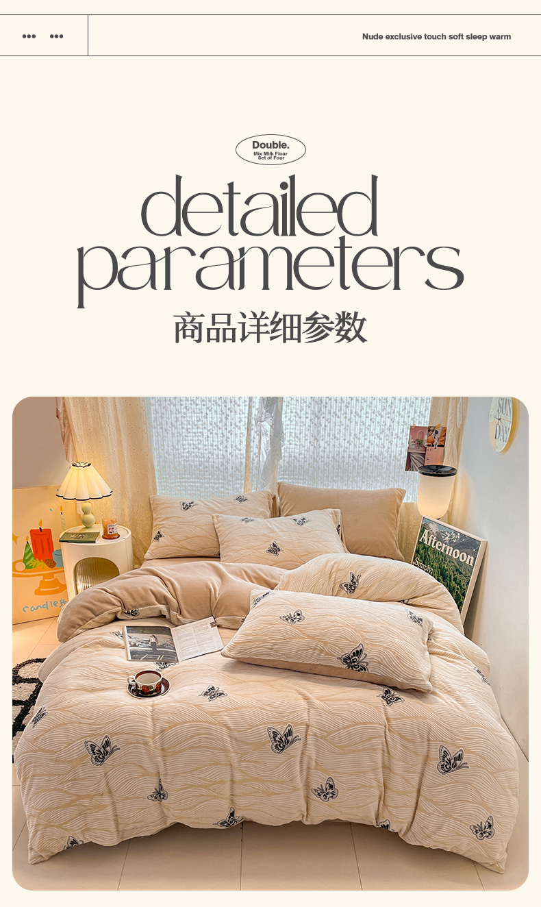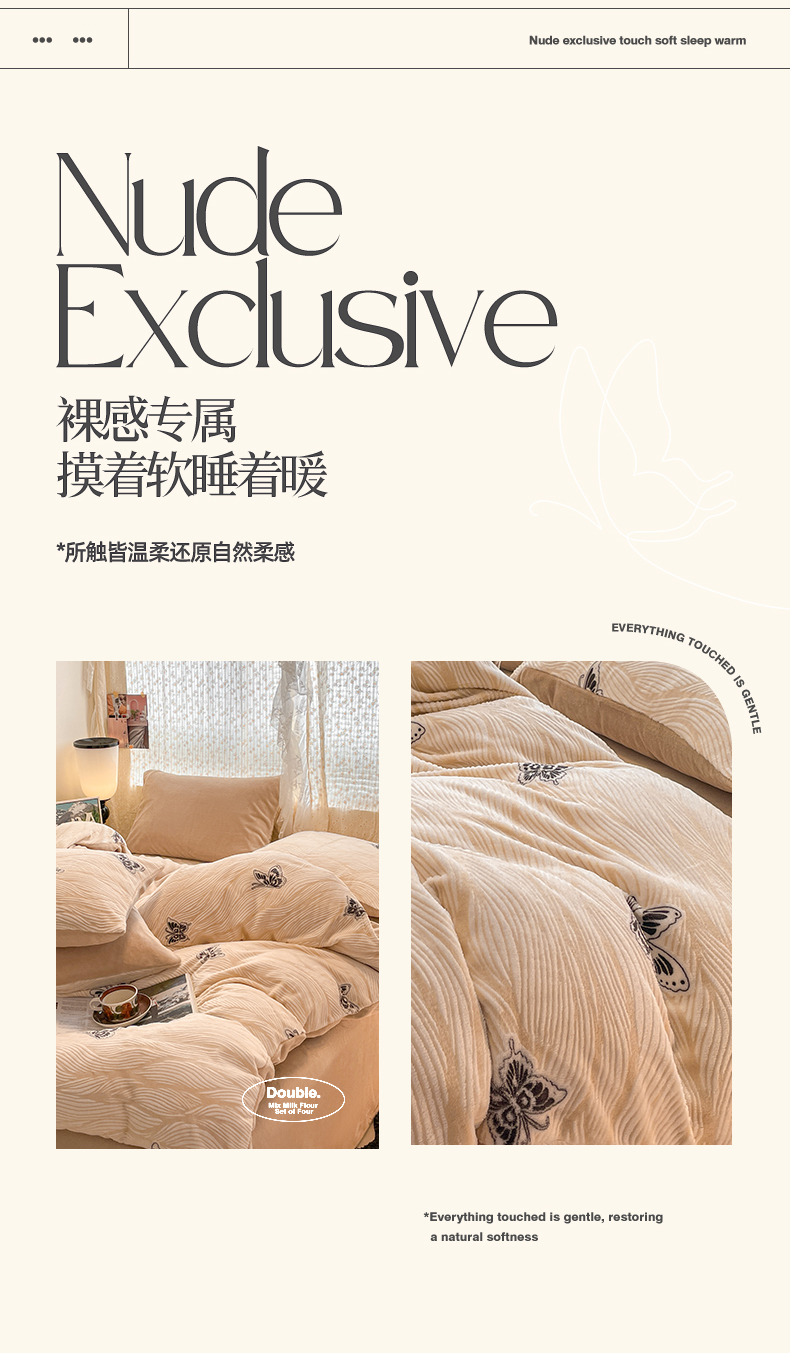 当前位置: 91家纺网 > 商品网购 > 床品套件 > 四件套 > 牛奶绒四件套 > 小叮当家纺仓储工厂店 2025新款高克重230克雕花牛奶绒四件套 水漾蝶舞-卡其