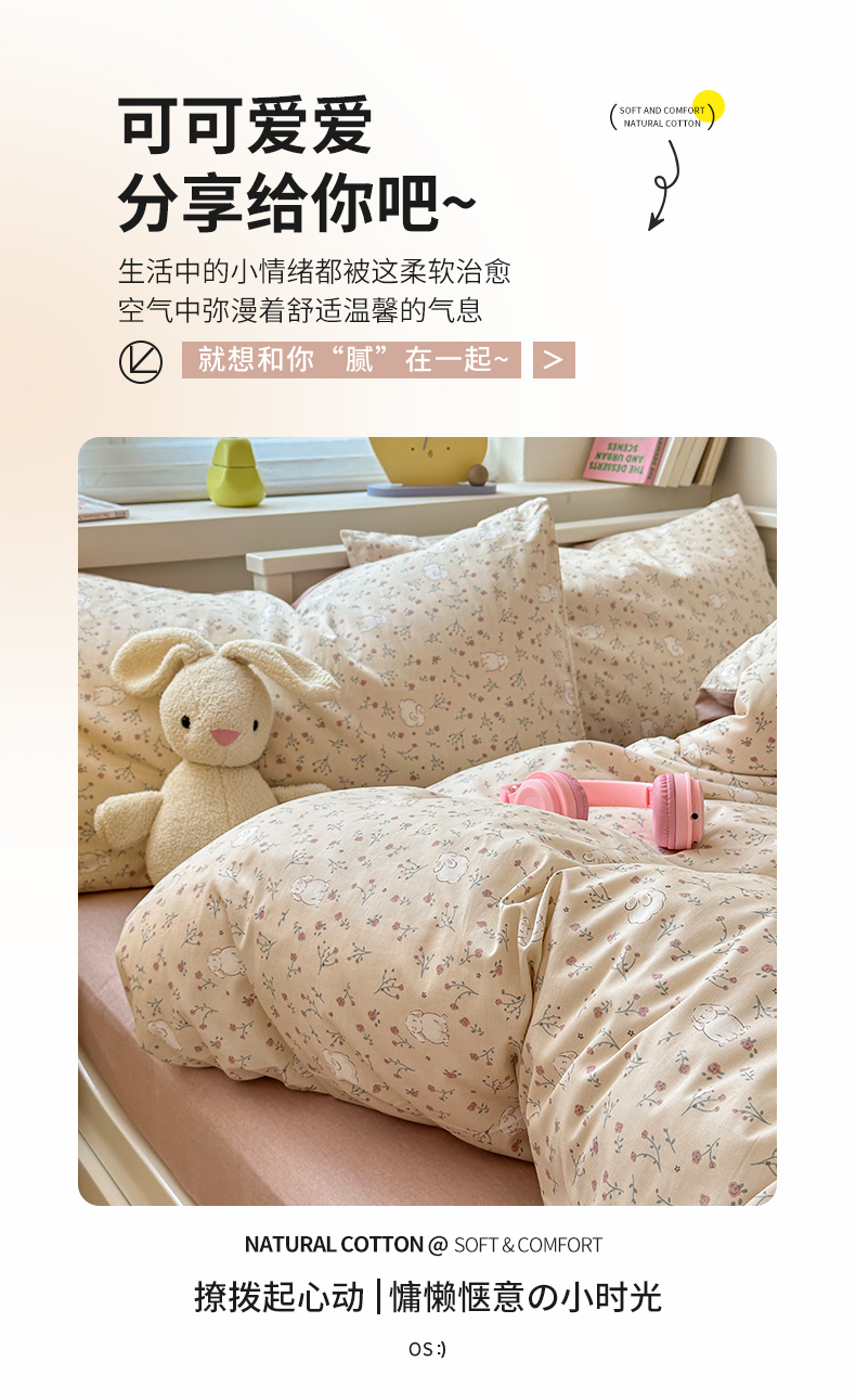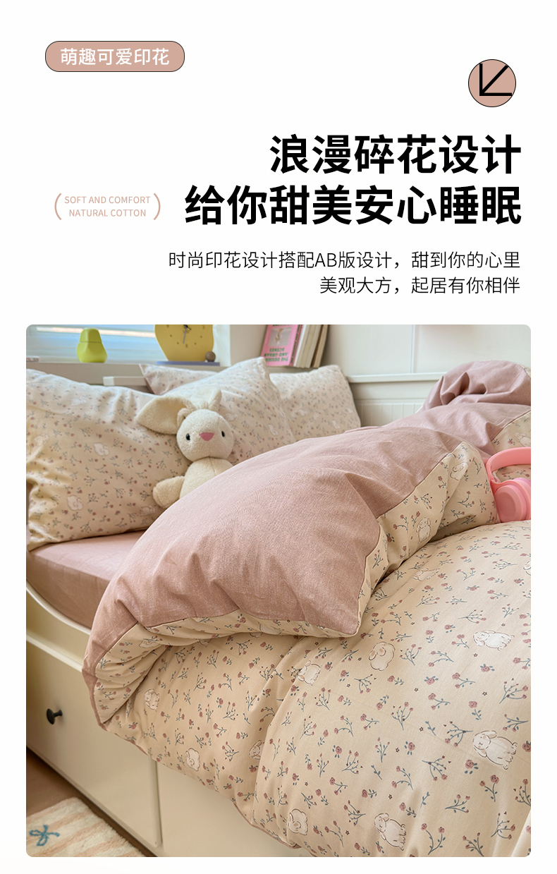 当前位置: 91家纺网 > 商品网购 > 床品套件 > 四件套 > 全棉普通四件套 > 小叮当家纺仓储工厂店 2025新款13372碎花系列全棉纯棉印花四件套 采薇兔