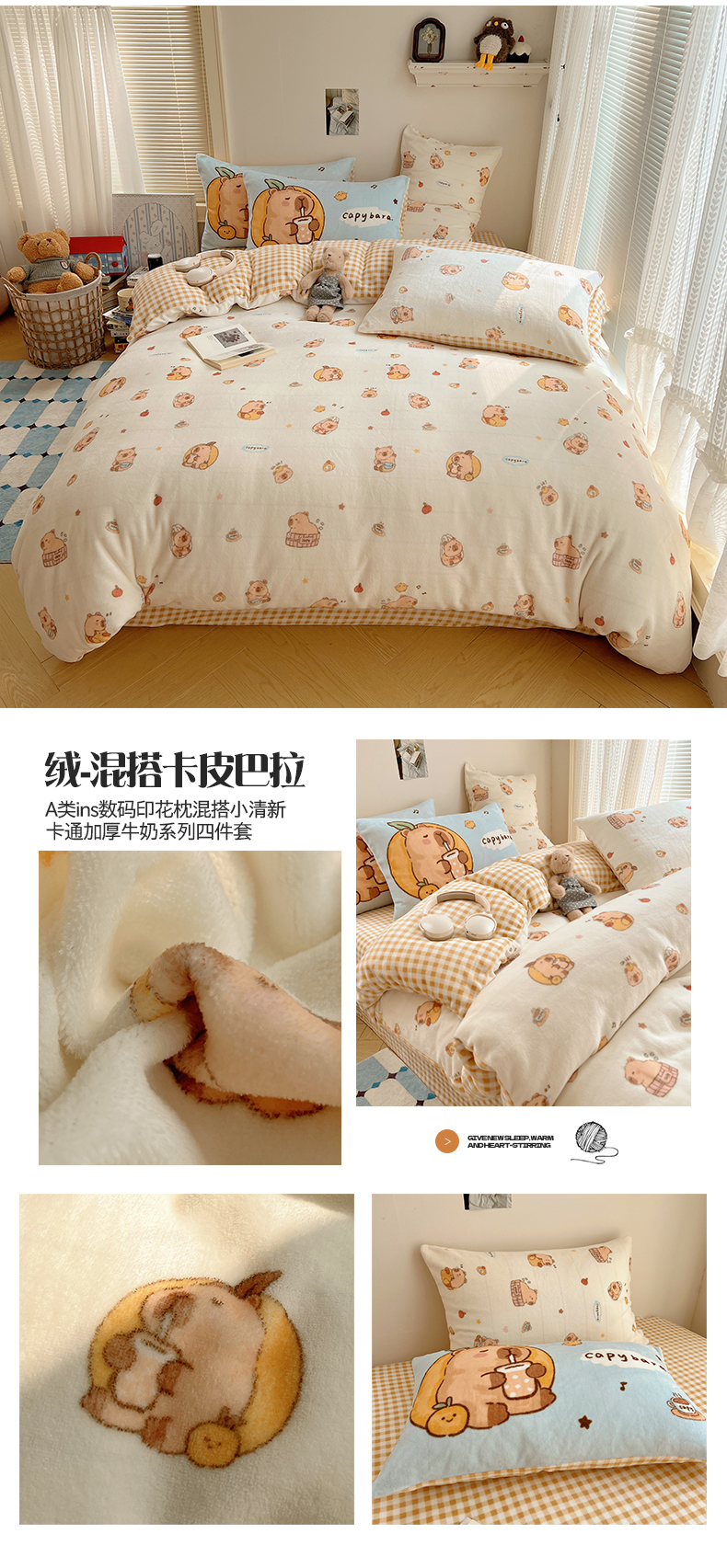 (总)桃子家居 2026新款A类数码印花混搭冬季新年限定猫咪小马加厚牛奶绒四件套,绒-粉色费尔岛小狗,绒-梦幻小马粉,绒-梦幻小马蓝红,绒-樱桃猫猫红,绒-樱桃猫猫咖,绒-棕糖木马