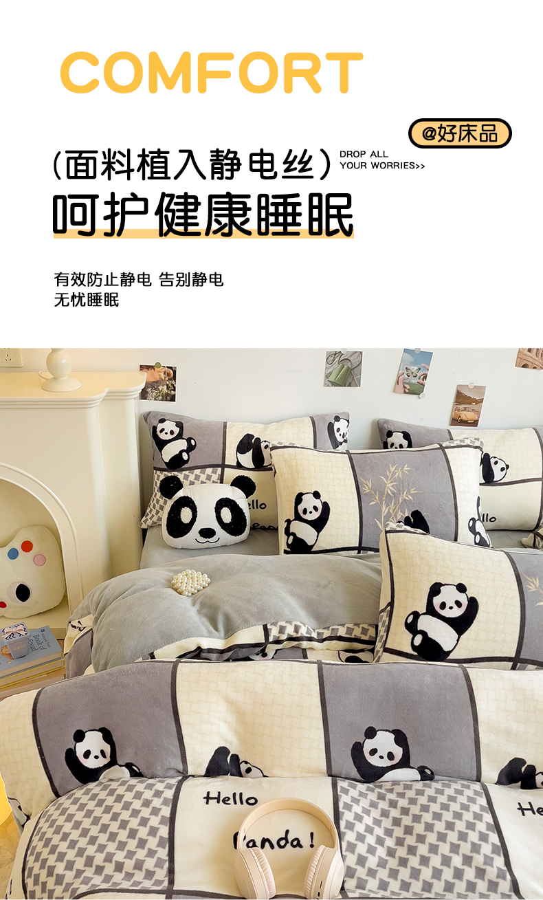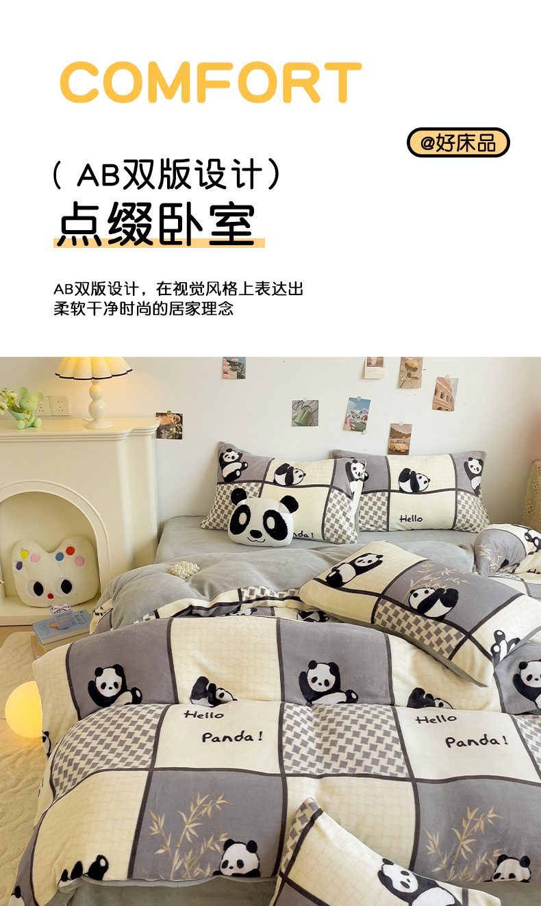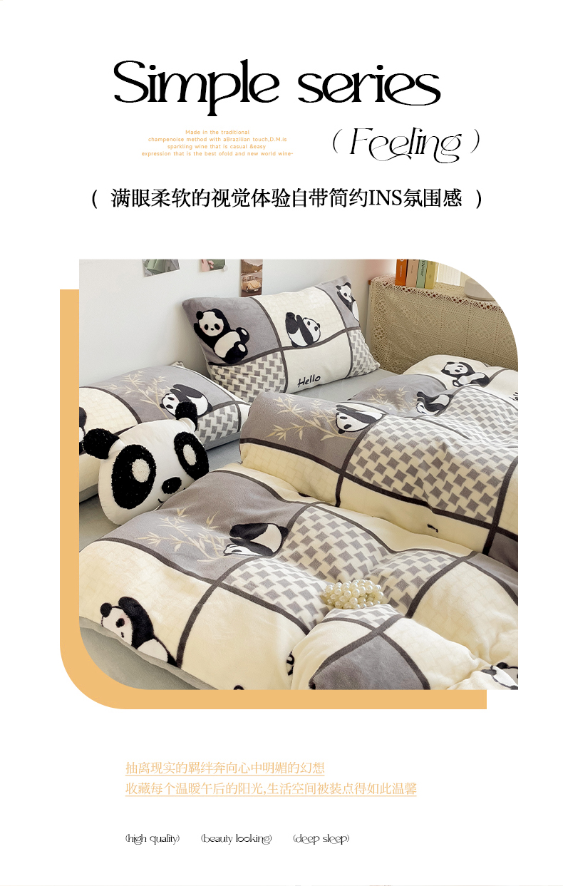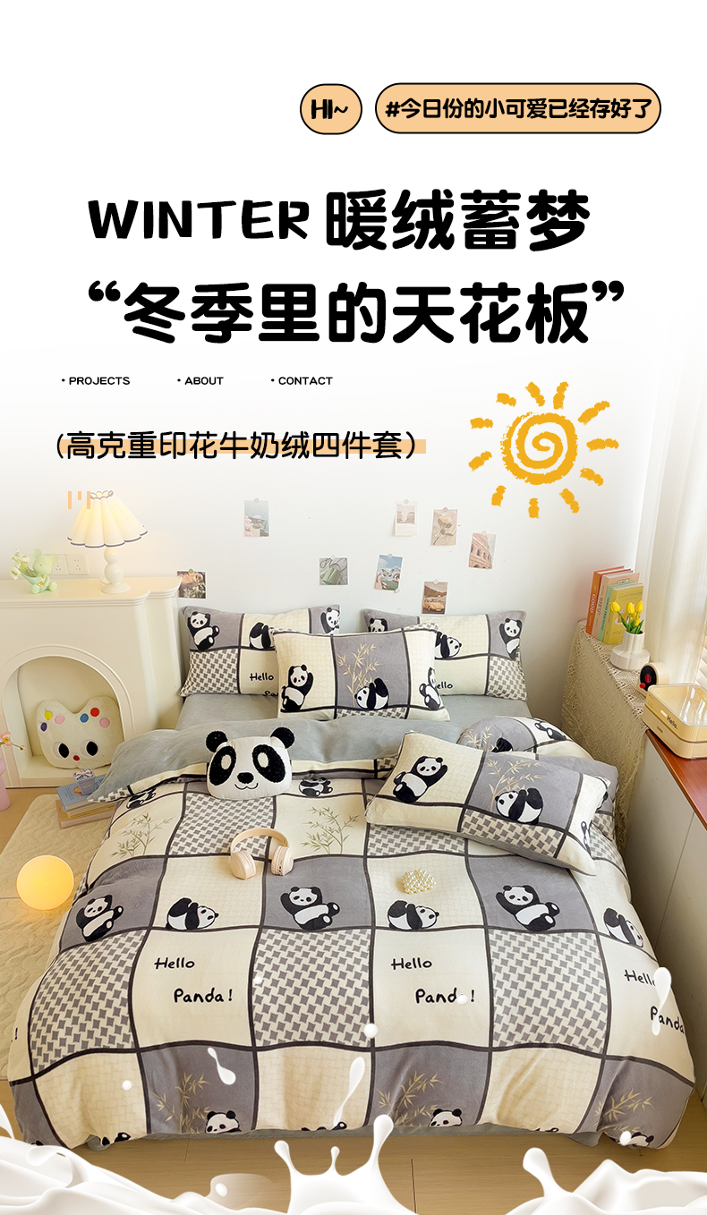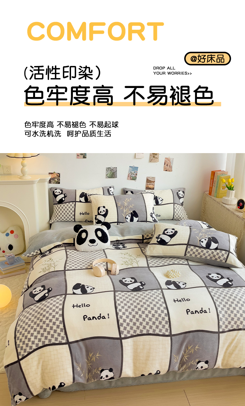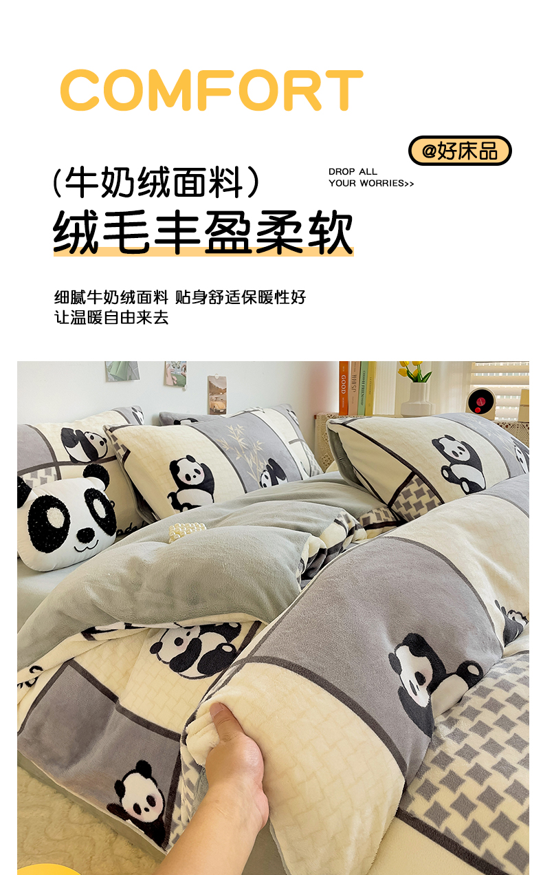 当前位置: 91家纺网 > 商品网购 > 床品套件 > 四件套 > 牛奶绒四件套 > 西引力 2025新款亲肤舒适加厚牛奶绒印花四件套 熊猫皮皮