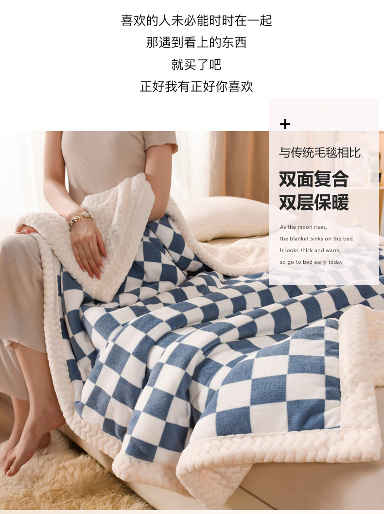 当前位置: 91家纺网 > 商品网购 > 毛毯休闲毯绒毯 > 毛毯 > 印季家纺 2025新款三层夹棉印花牛奶绒毛毯毯子 棋盘格-蓝-贝贝绒(白)