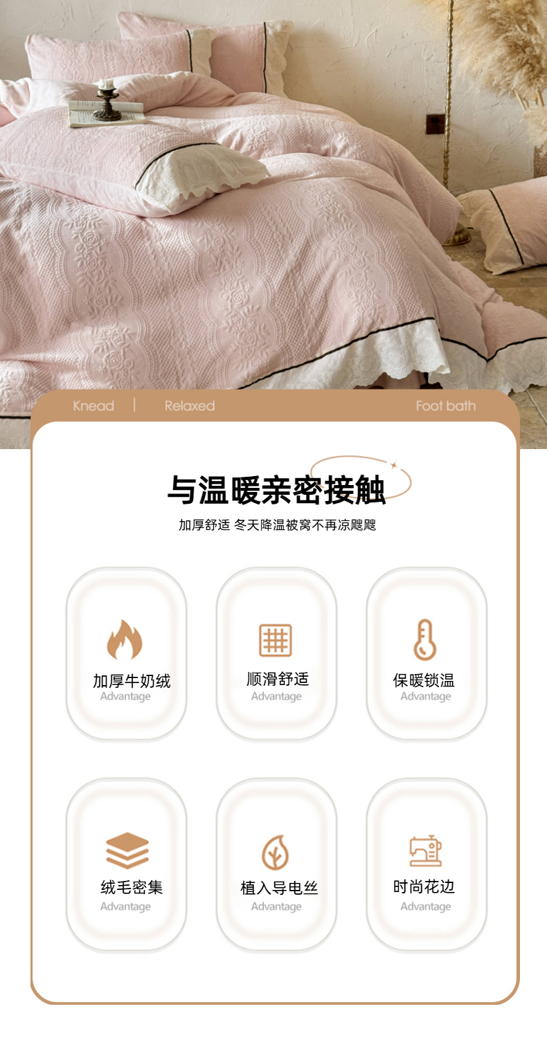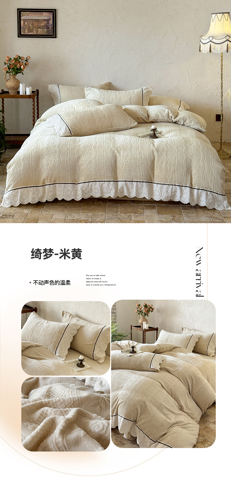 (总)纯优家纺 2025新款秋冬轻法式花边款雕花牛奶绒四件套-绮梦,绮梦-蜜桃粉,绮梦-米黄,绮梦-芋泥紫