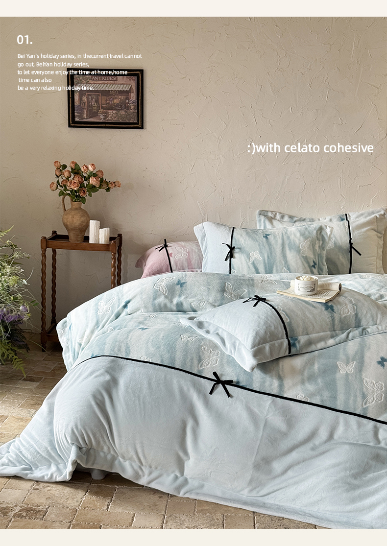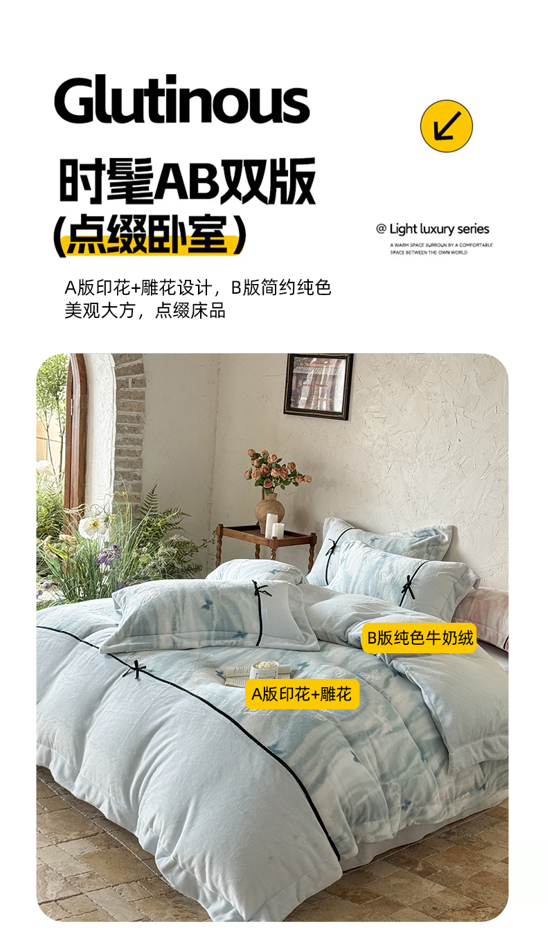 当前位置: 91家纺网 > 商品网购 > 床品套件 > 四件套 > 牛奶绒四件套 > (总)纯优家纺 2025新款黑色小蝴蝶结雕花牛奶绒四件套-境花蝶梦