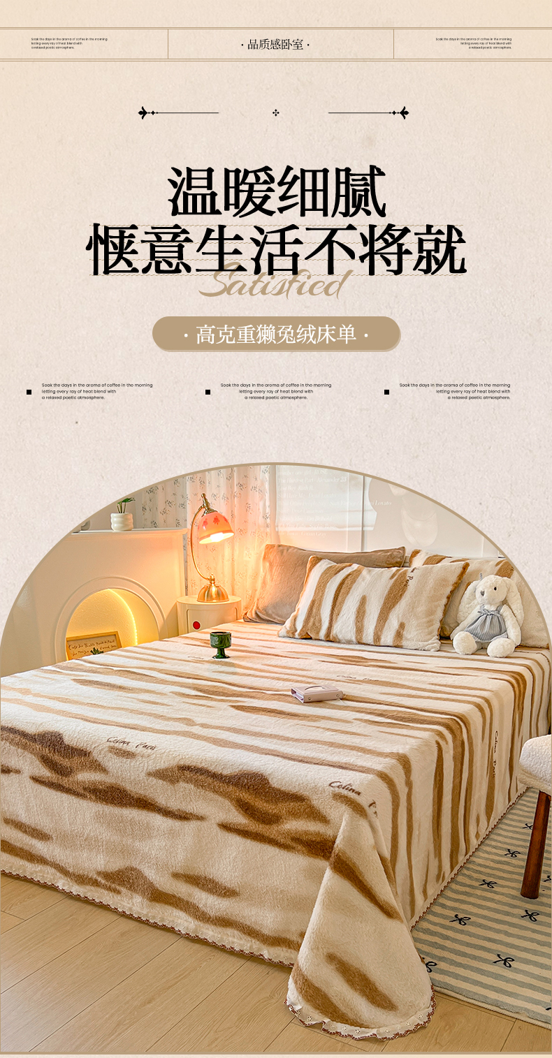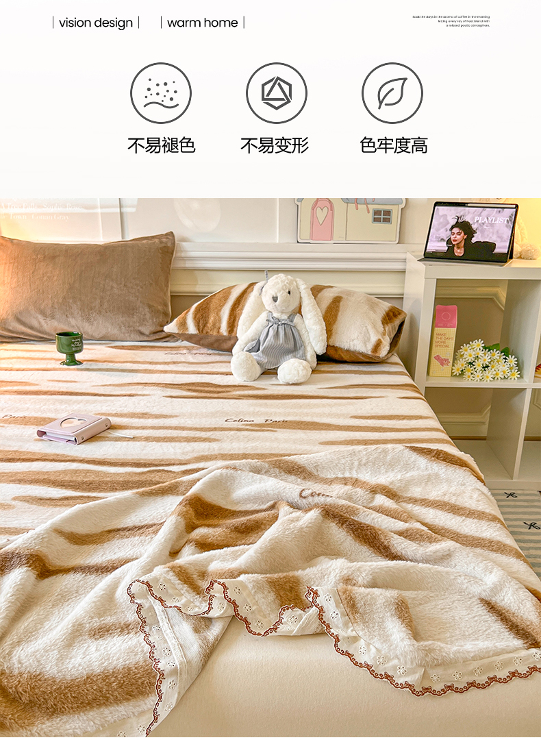 • 91家纺网 家纺一手货源 找家纺 妖妖家纺 2025新款高克重兔毛花边印花单床单 床单单件 木星纹