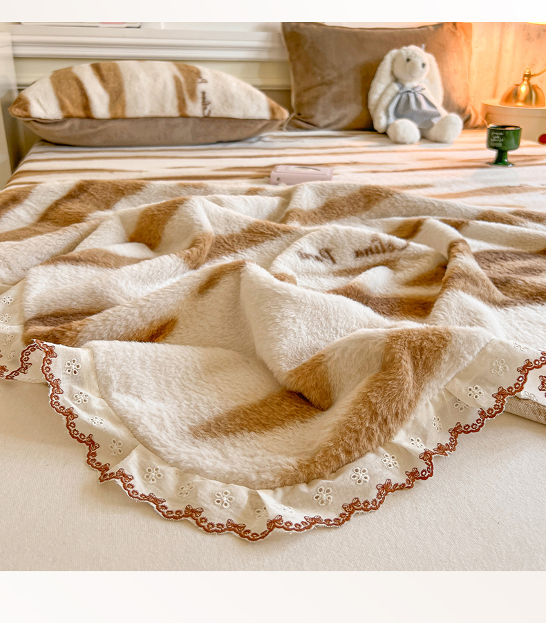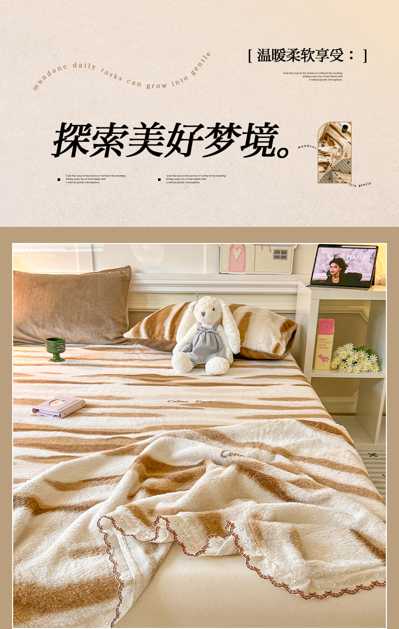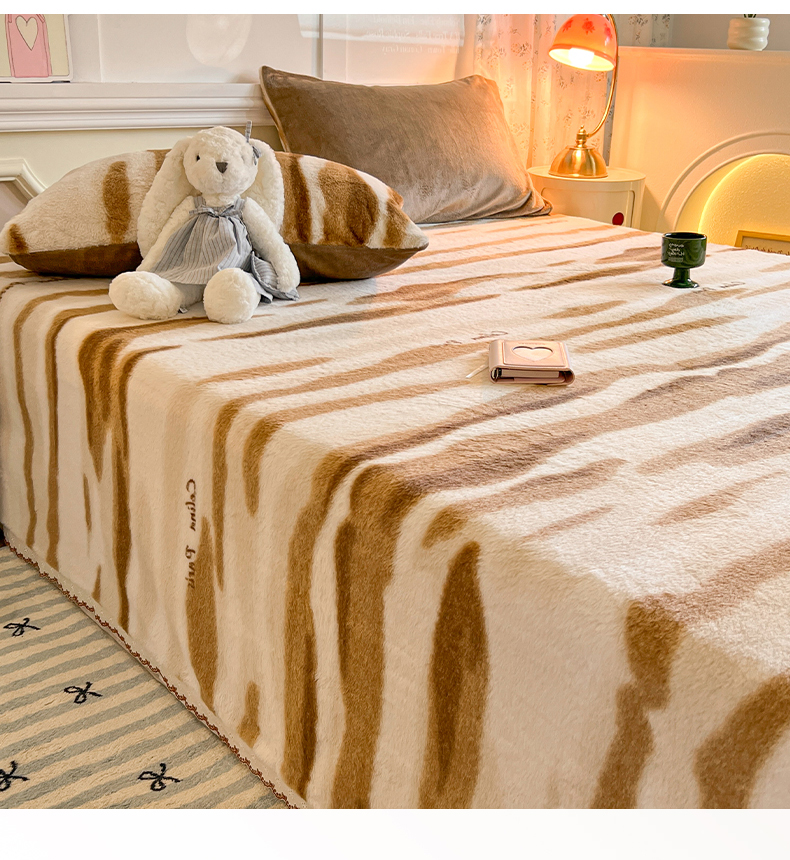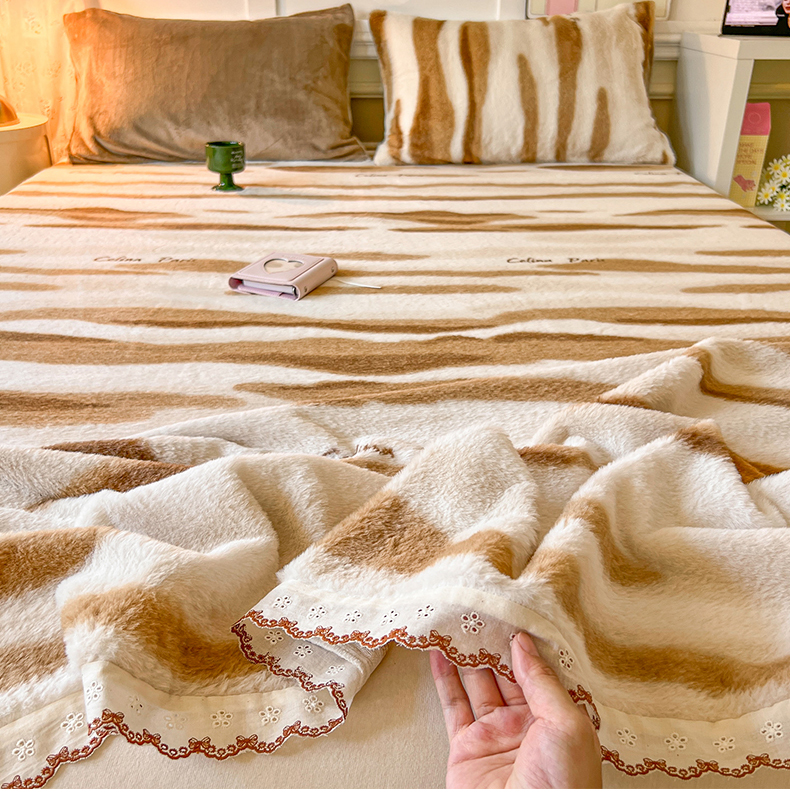 妖妖家纺 2025新款高克重兔毛花边印花单床单 床单单件 木星纹