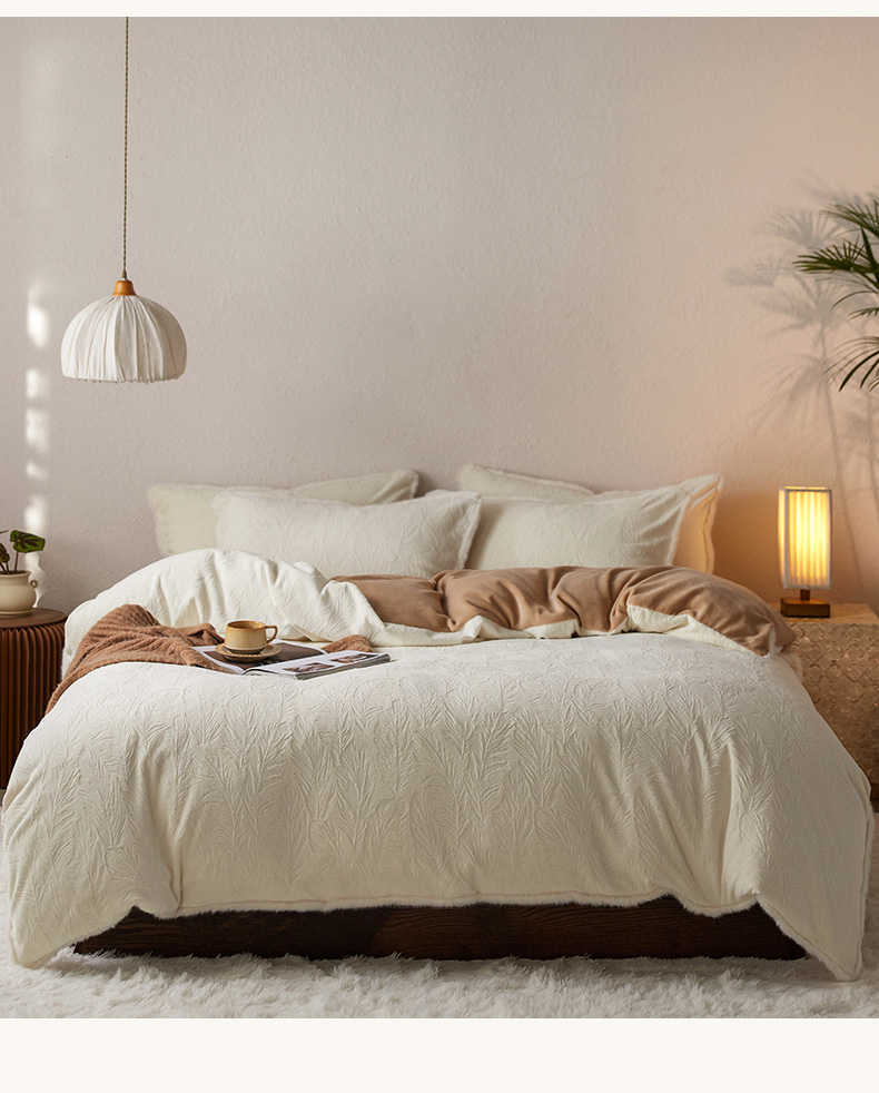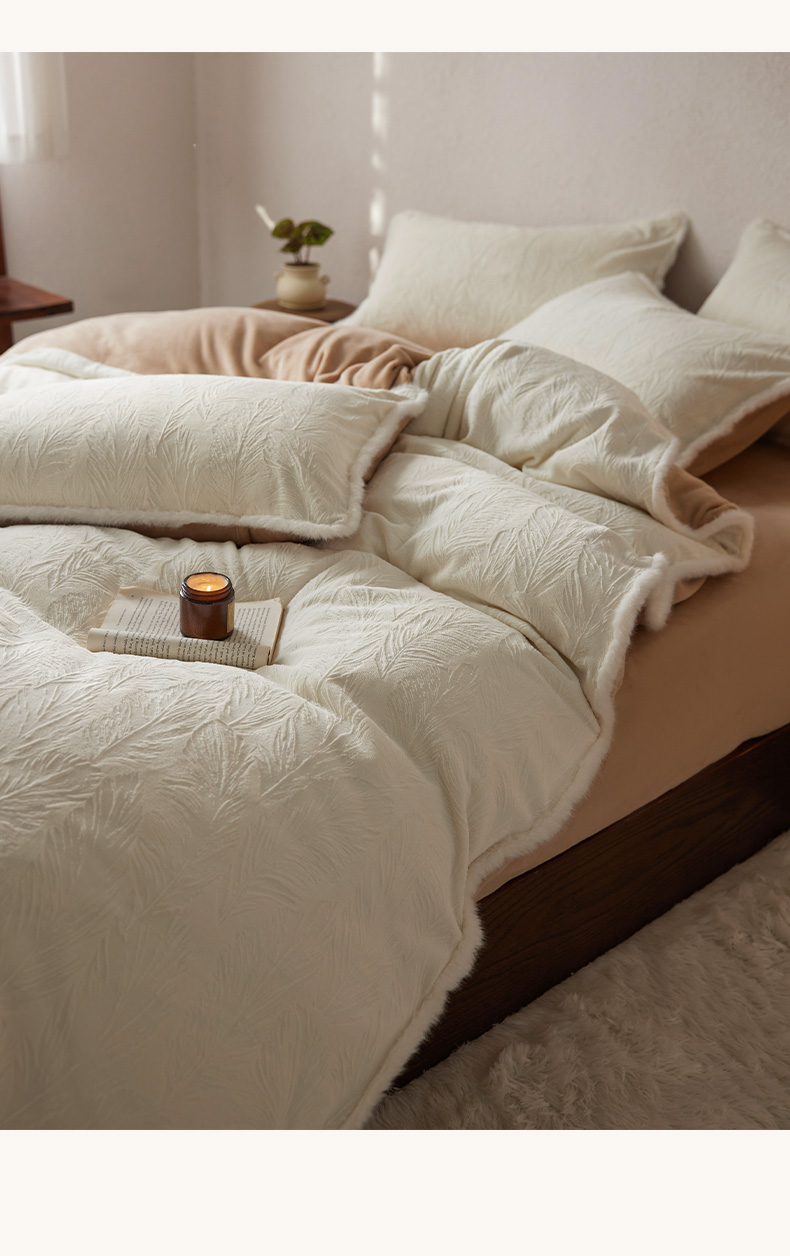 三味舒屋 2025新款雕花牛奶绒毛边款四件套 绒羽浮光 绒羽浮光-白