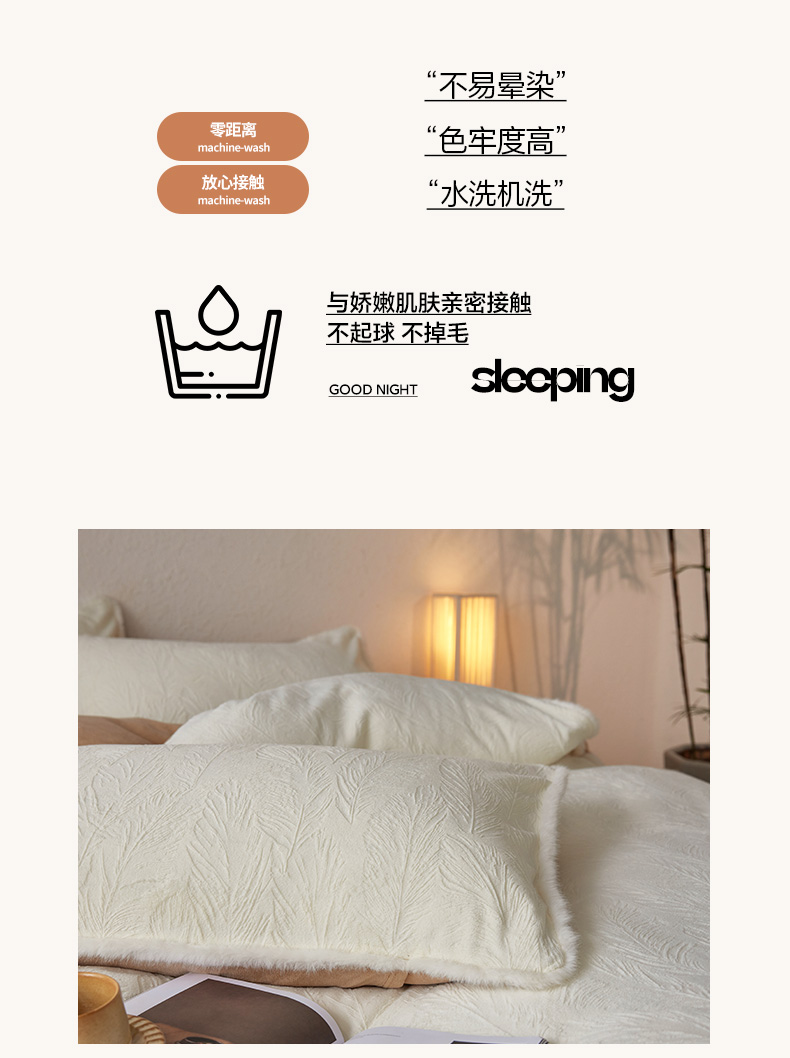 商品名称:三味舒屋 2025新款雕花牛奶绒毛边款四件套 绒羽浮光 绒羽浮光-白