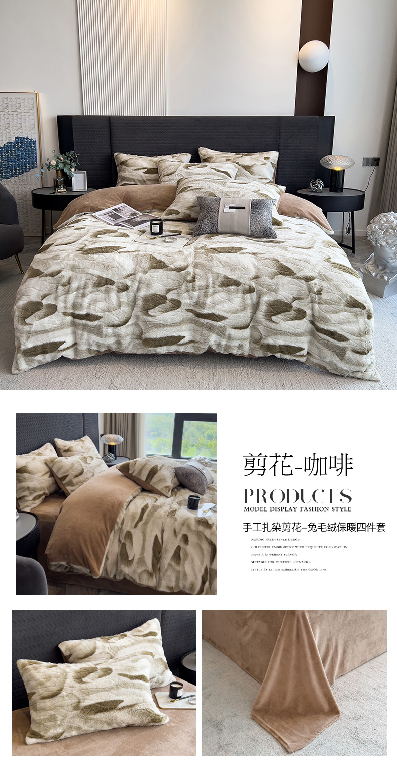 当前位置: 91家纺网 > 商品网购 > 床品套件 > 四件套 > 兔毛绒四件套 > 印季家纺 2025新款手工扎染剪花兔毛绒四件套 剪花-豆沙