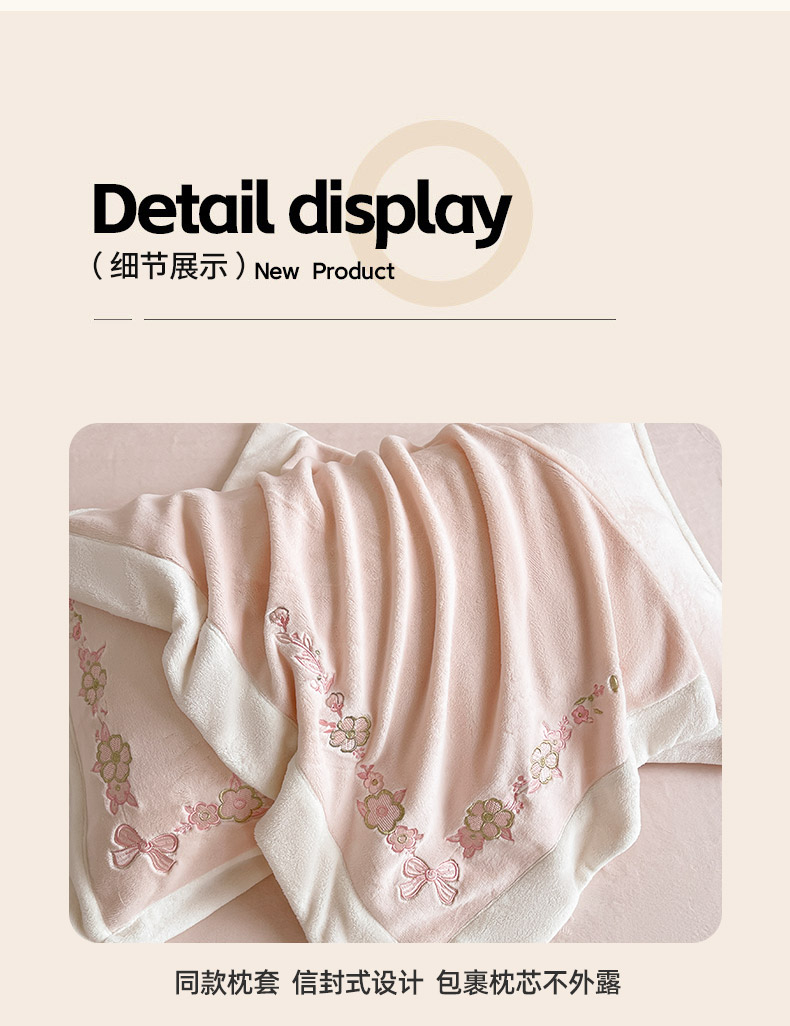 2025直播爆款A类加厚牛奶绒四件套保暖双面加绒珊瑚绒重工刺绣被套床单冬季床上用品 妮可兔-粉白