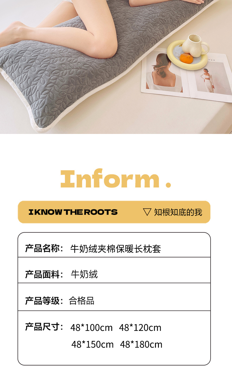 商品名称:雨彤家纺 2025新款牛奶绒夹棉包边长枕套 绒包边枕套-高级灰