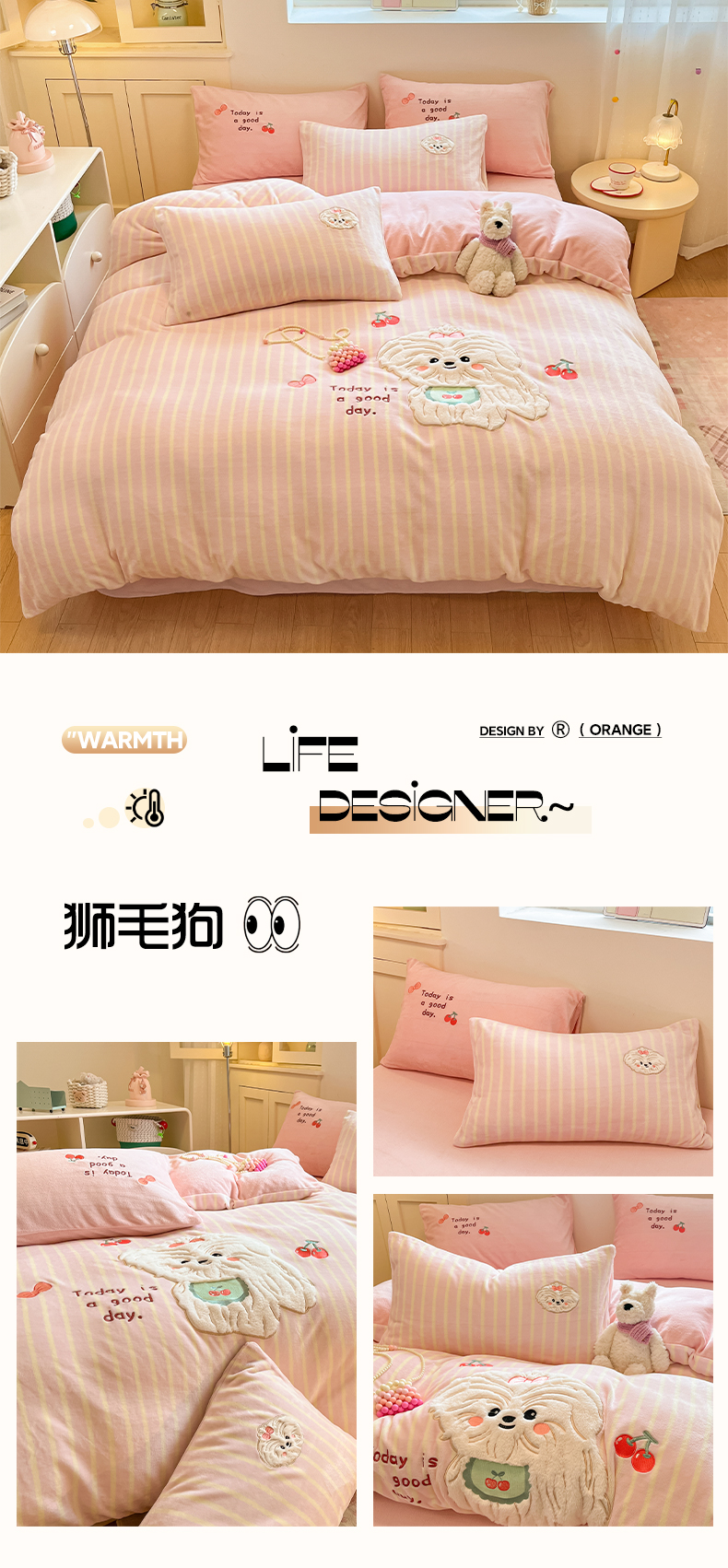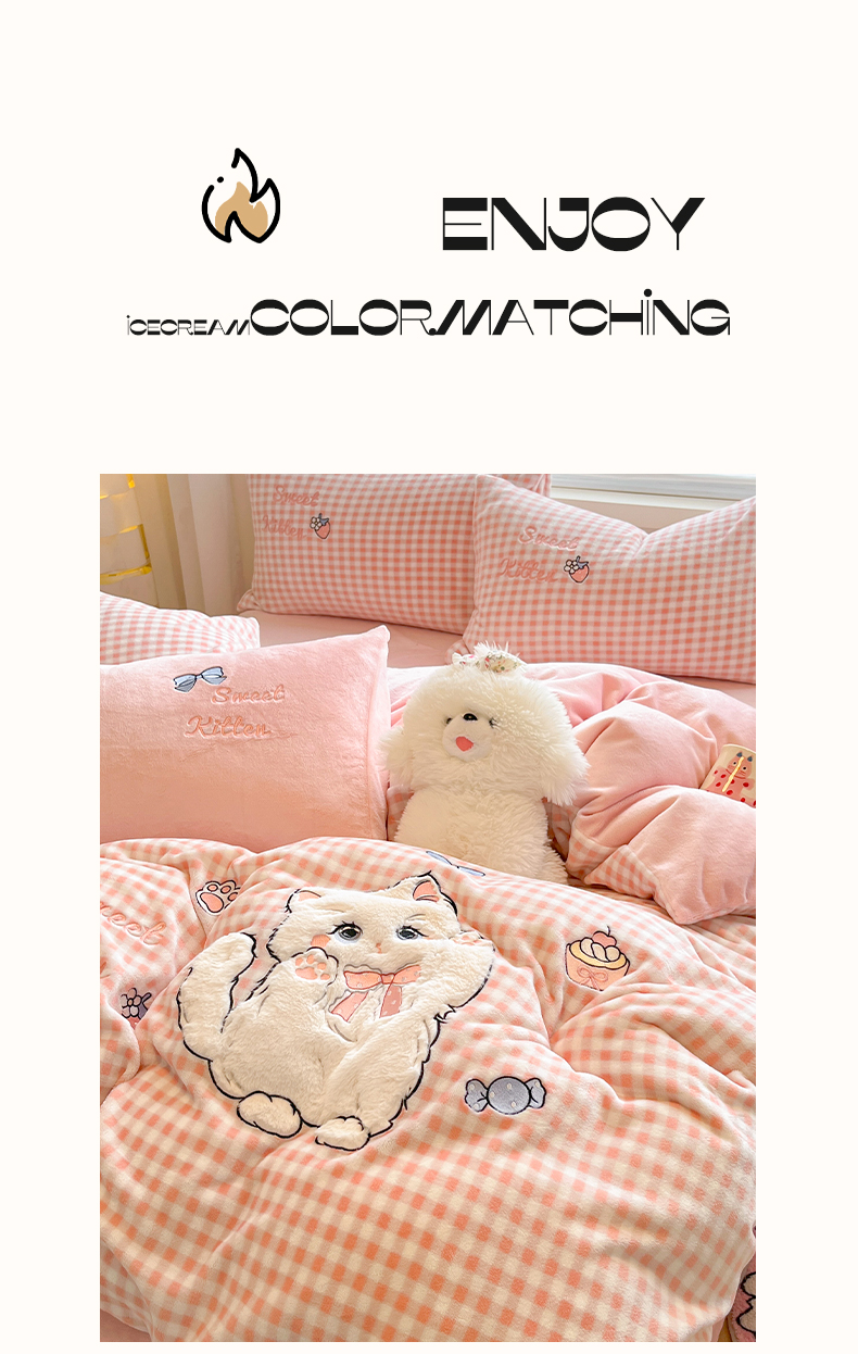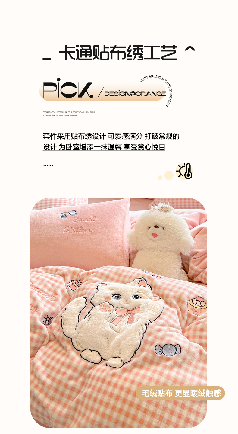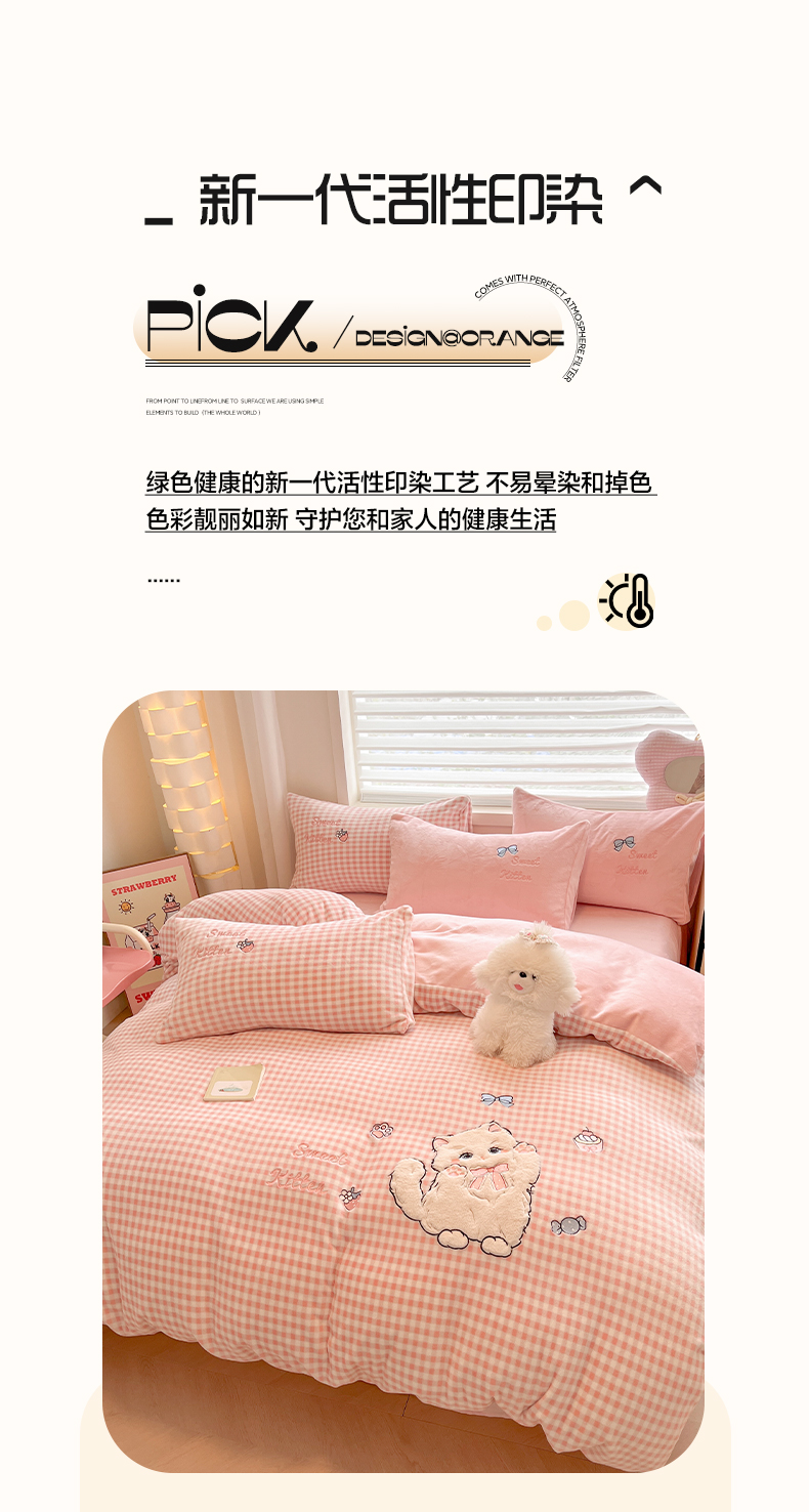 当前位置: 91家纺网 > 商品网购 > 床品套件 > 四件套 > 牛奶绒四件套 > 如一 2025新款高克重卡通贴布绣牛奶绒四件套 粉格猫