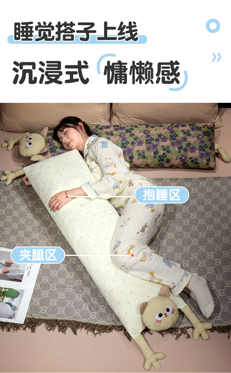 商品名称:(总)仟亿莱 2025新款亲肤舒适举手猫咪长条抱枕单品抱枕单件抱枕