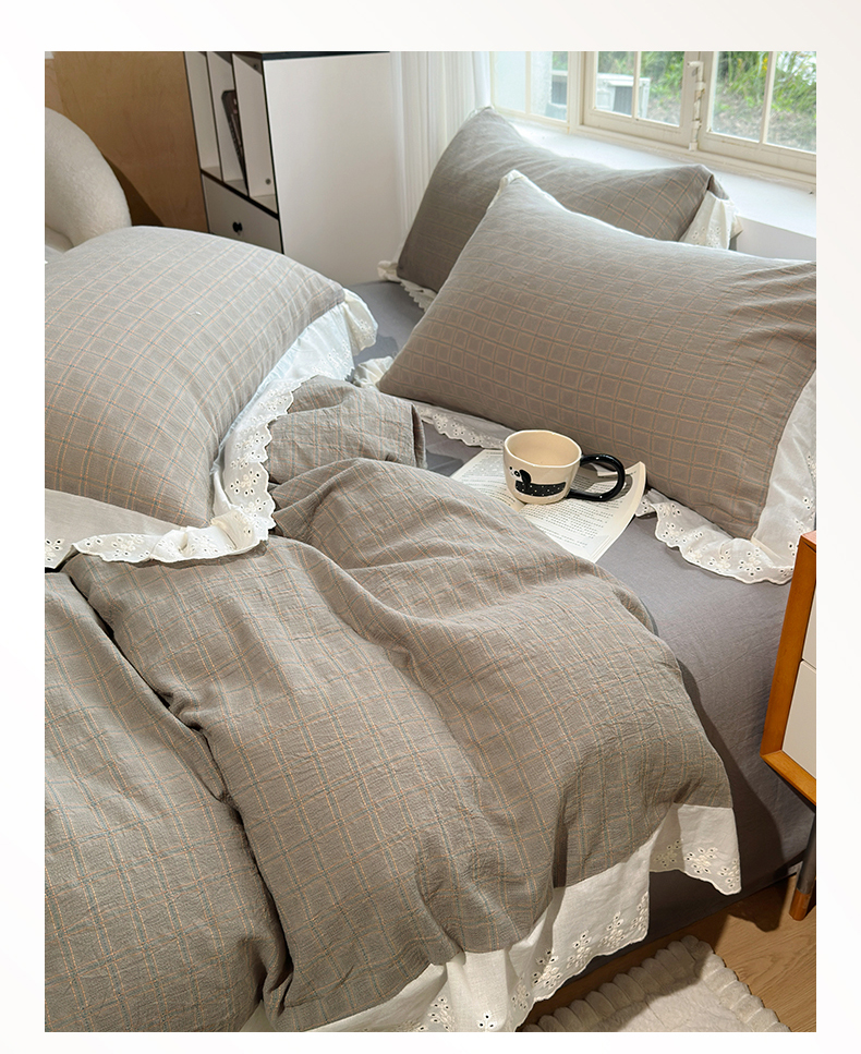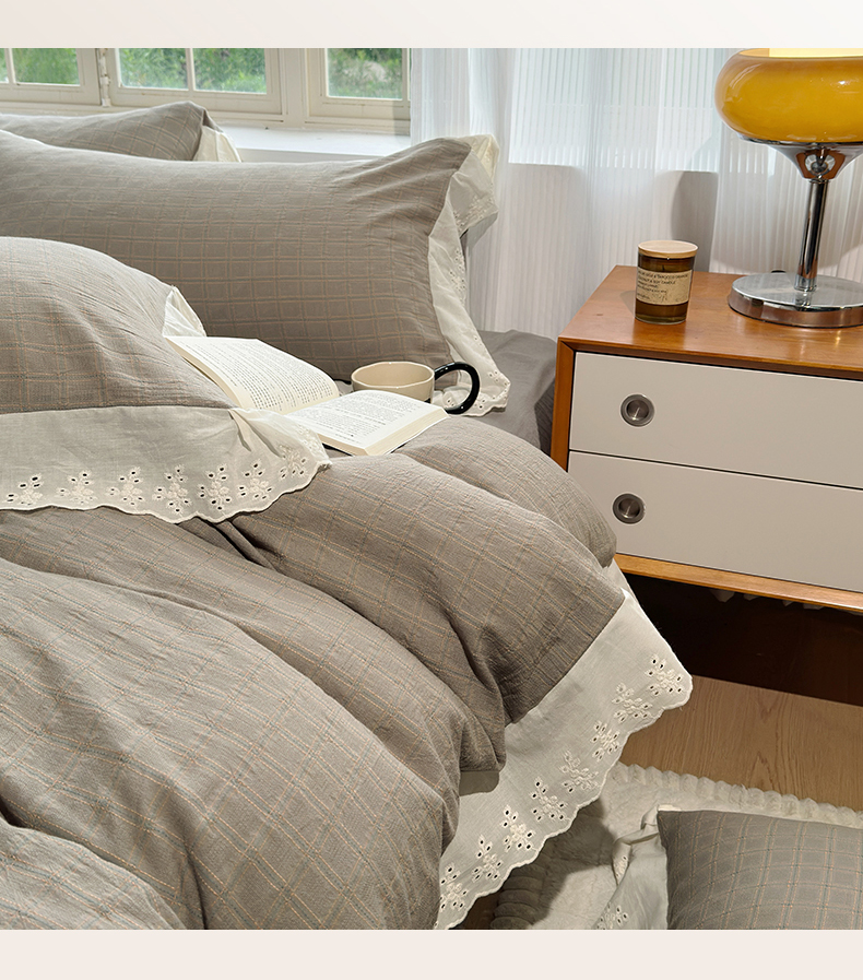 水洗的故事(原有乐家) 2025新款全棉水洗色织提花大花边四件套 布兰妮-灰