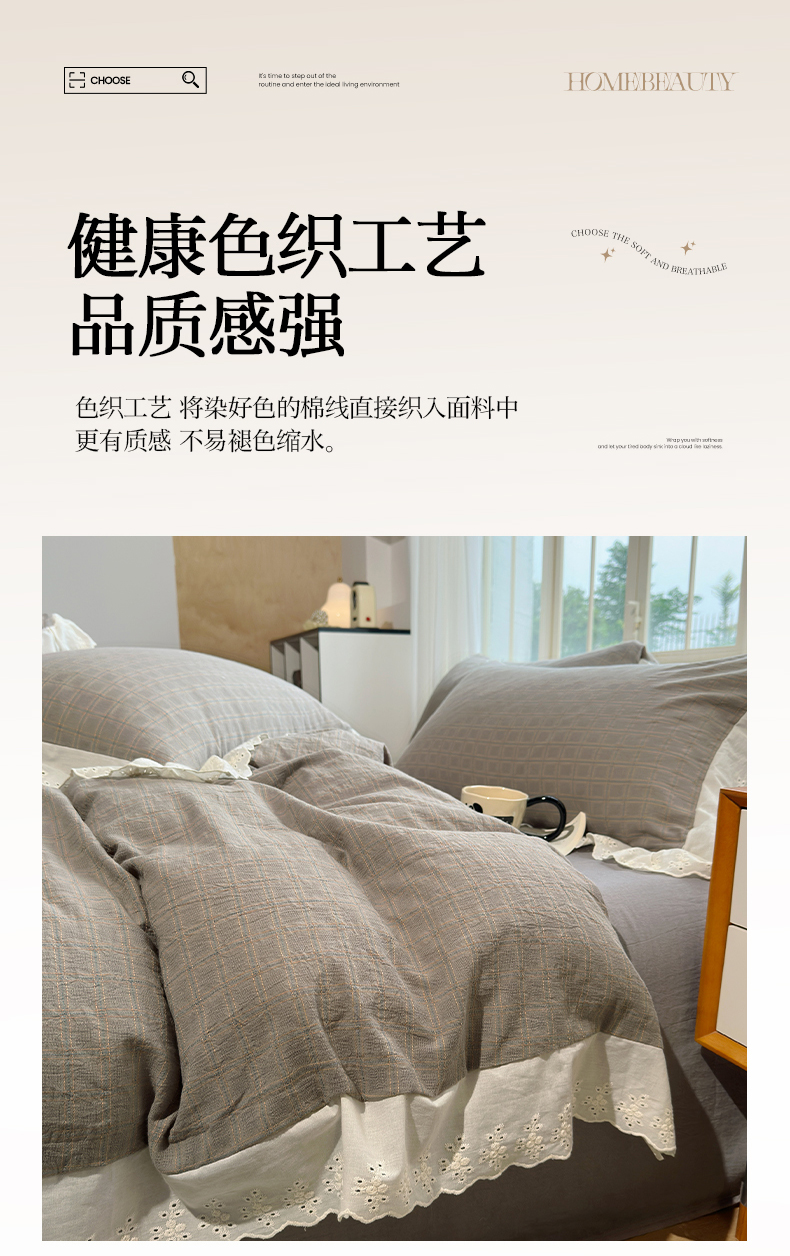(总)水洗的故事(原有乐家) 2025新款全棉水洗色织提花大花边四件套,布兰妮-灰,布朗妮-咖,满天星-绿,满天星-米