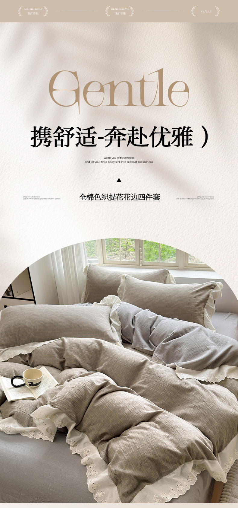 商品名称:水洗的故事(原有乐家) 2025新款全棉水洗色织提花大花边四件套 布兰妮-灰