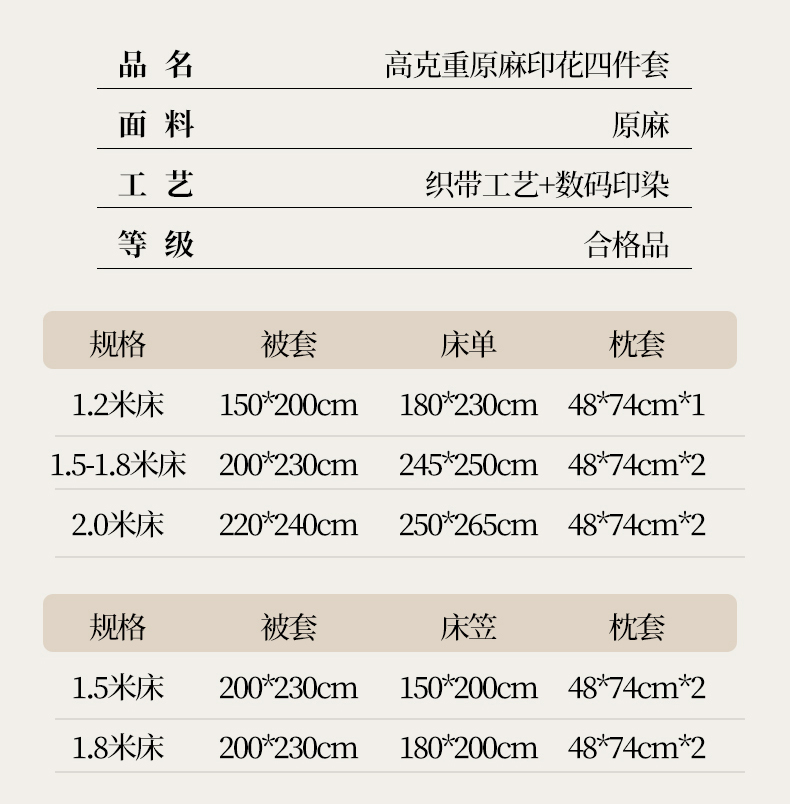 商品名称:(总)优悦生活馆 2025新款高克重原麻印花四件套