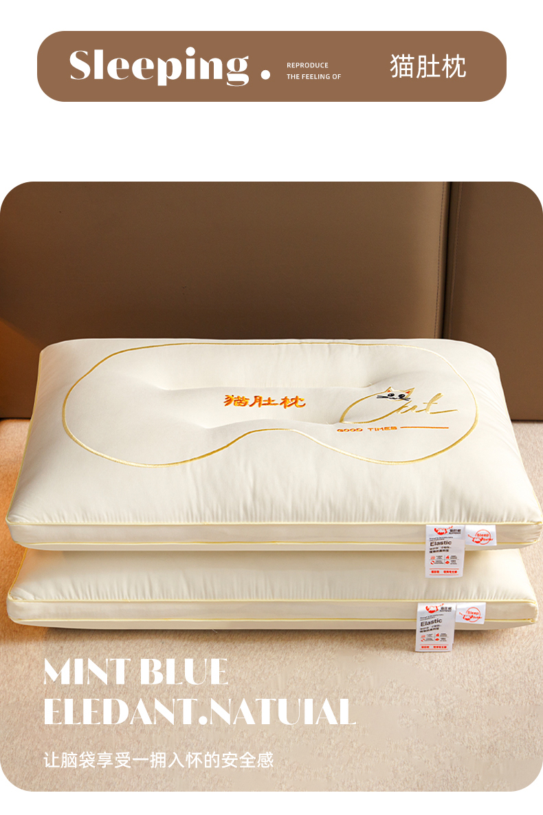 商品名称:织布人 2025新款枕芯亲肤磨绒舒颈猫肚枕芯学生宿舍成人家用护颈助眠枕头 舒颈猫肚枕-粉色