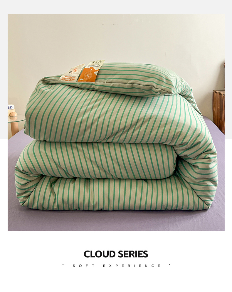 商品名称:优选 2025新款冬被水洗棉被子被芯 条纹绿+酱紫