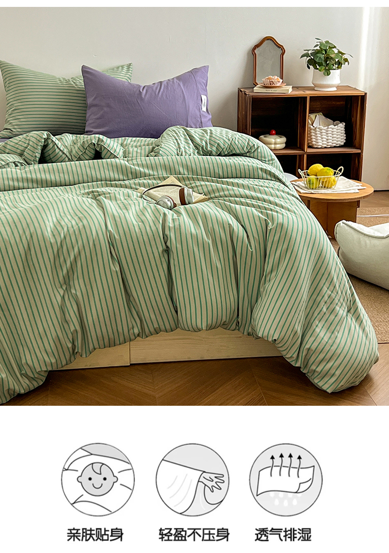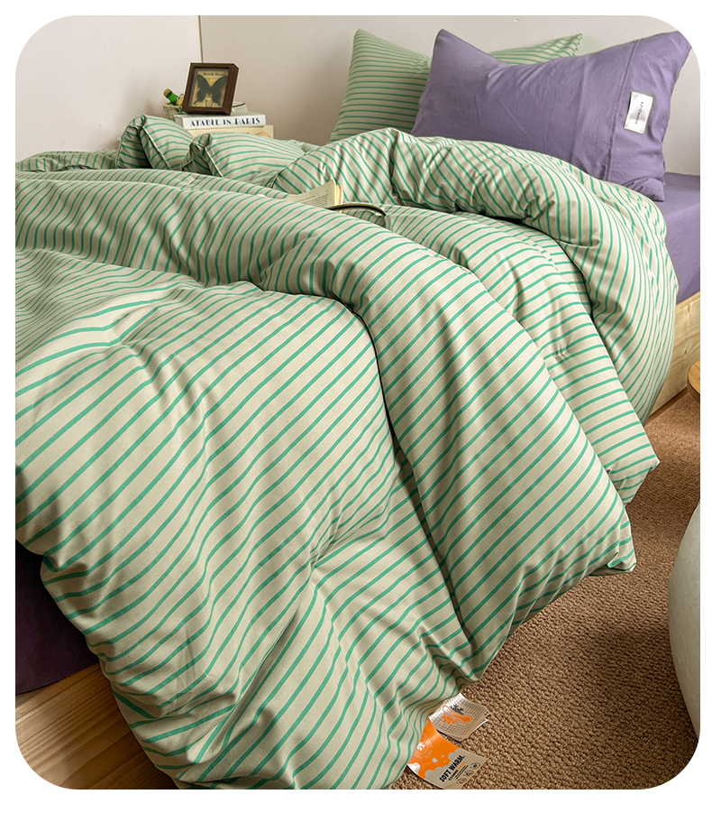 (总)优选 2025新款韩式无印风水洗棉拼色学生三件套床单床笠款四件套,条纹卡其+深红,条纹水蓝+咖啡,条纹香芋紫+深紫,条纹抹茶绿+酱紫,条纹海洋蓝+深蓝,组合,条纹柠檬黄+咖啡