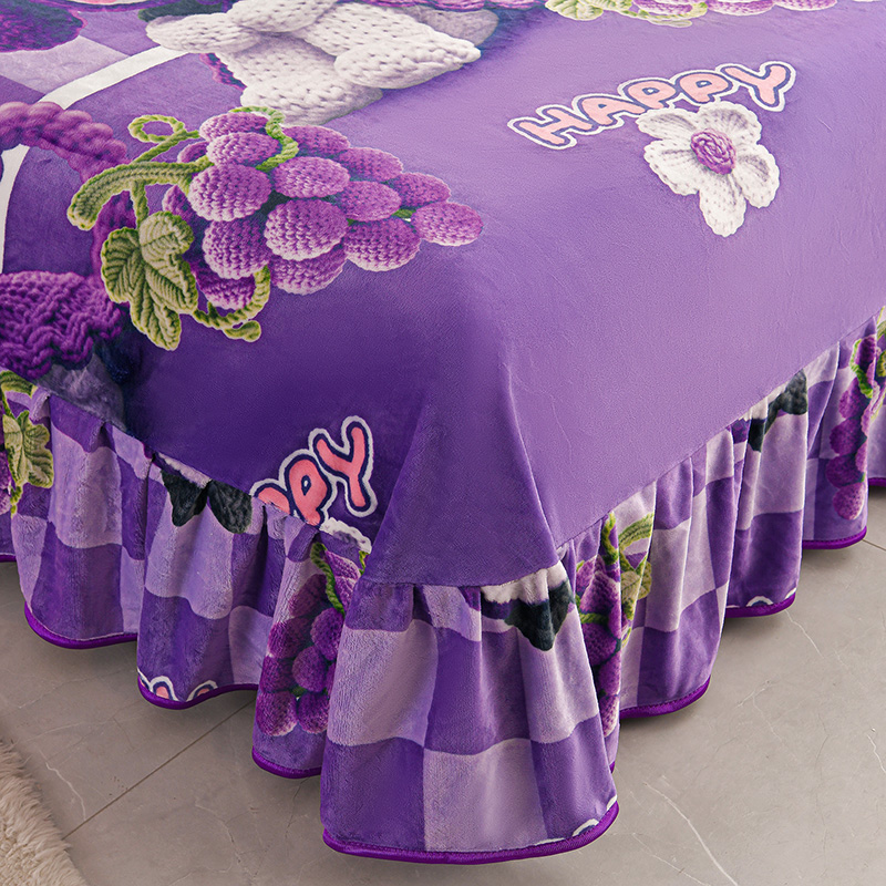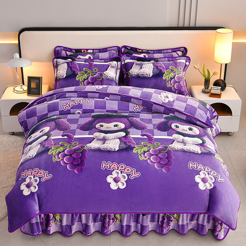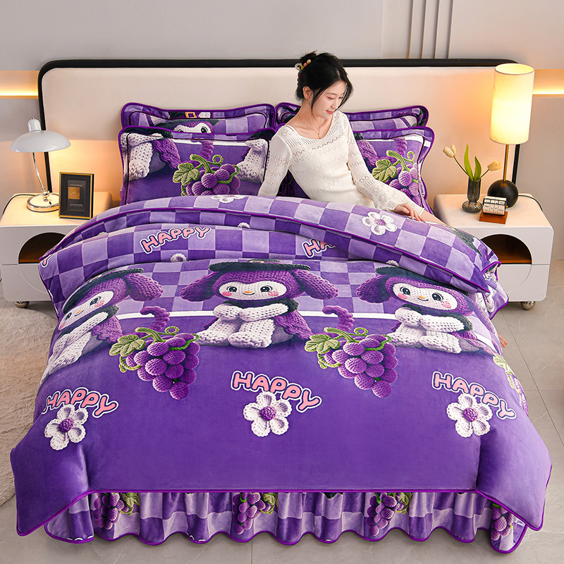 妮恒美 2025新款牛奶绒印花床裙款四件套法莱绒四件套珊瑚金貂绒四件套 潮牌库洛