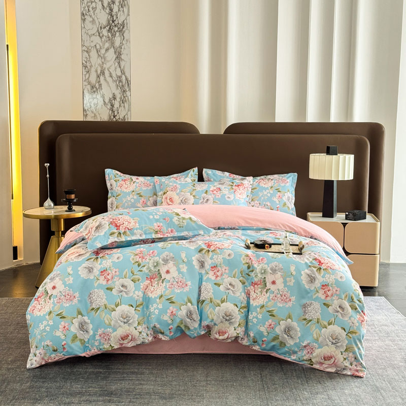 桔禾家纺 2025新款田园花卉小清新直播加厚植物羊绒四件套高克重磨毛跨境四件套 大量现货 繁花田薇