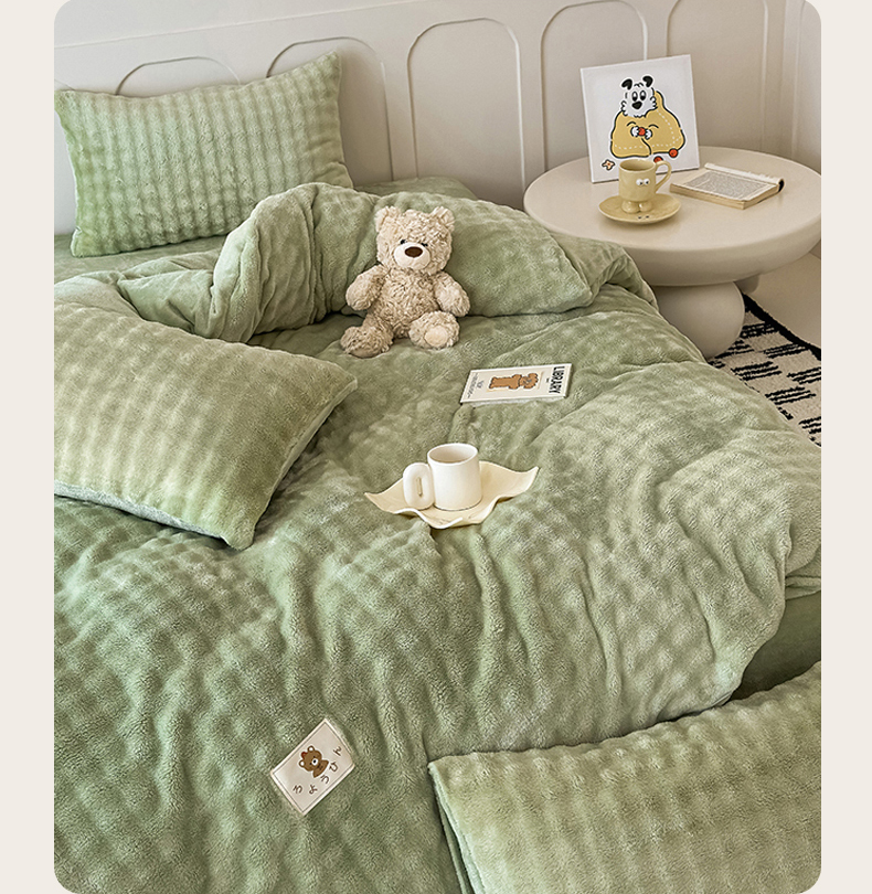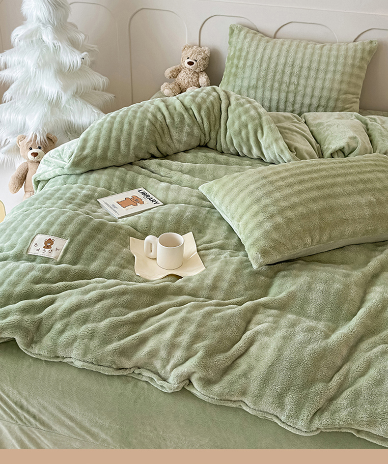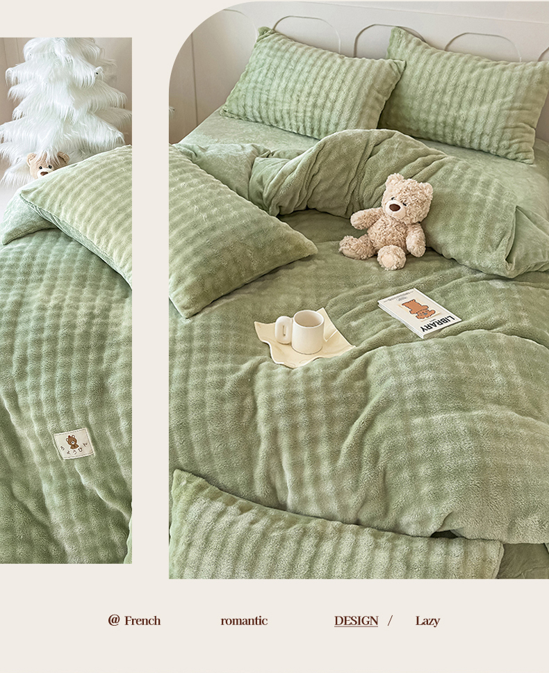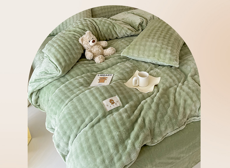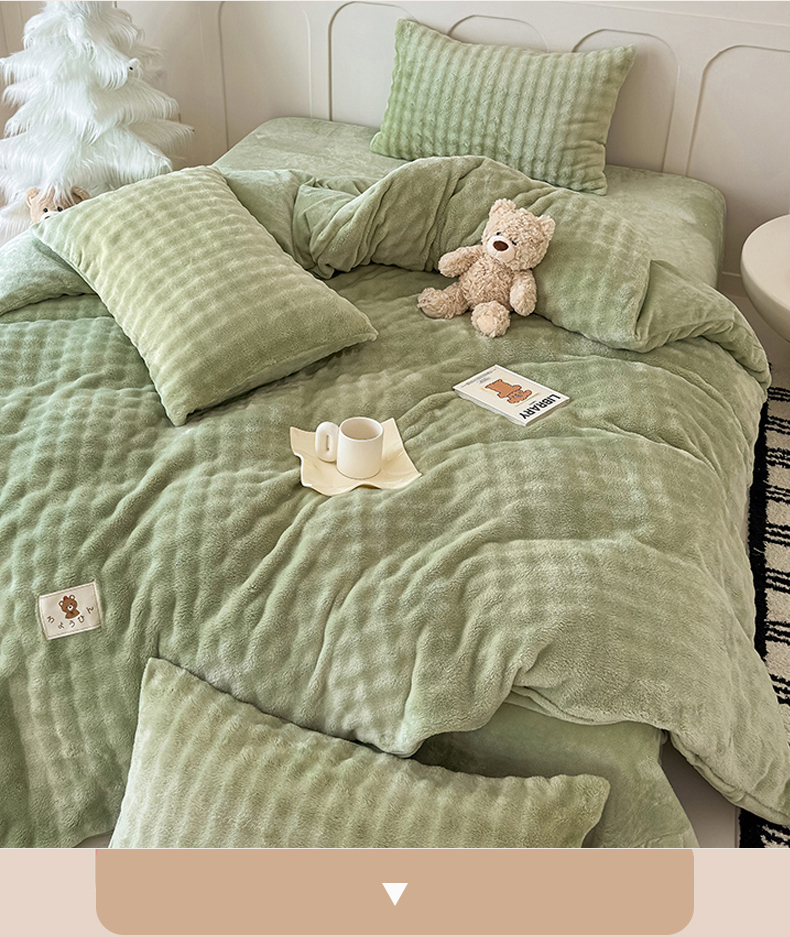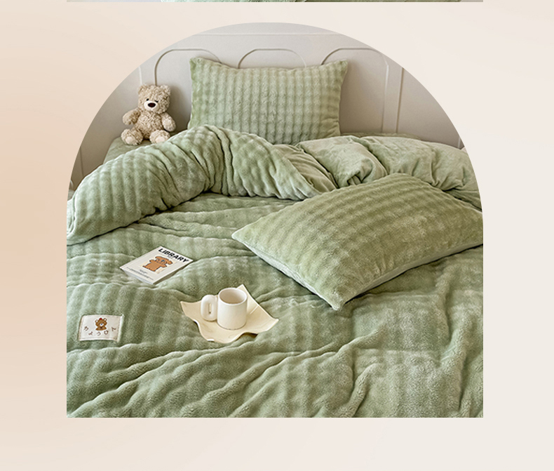 当前位置: 91家纺网 > 商品网购 > 床品套件 > 四件套 > 兔毛绒四件套 > 宜派家纺 2025新款A类简约高克重泡泡兔毛绒四件套 泡泡-茶绿