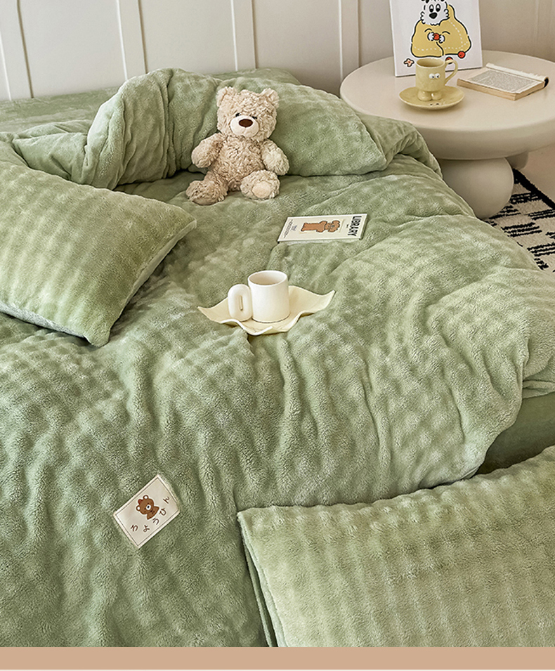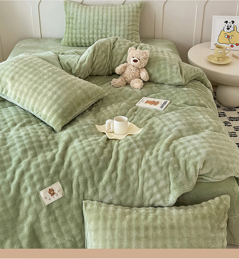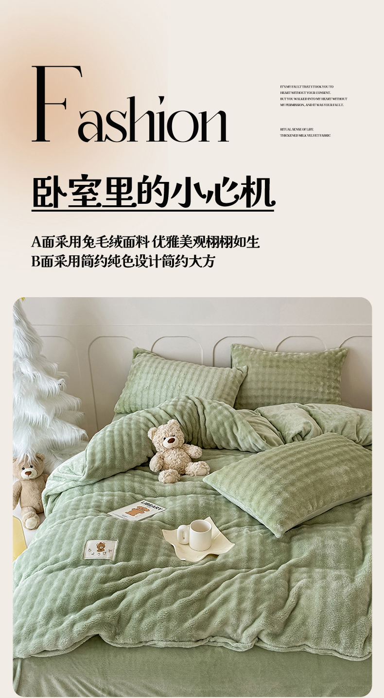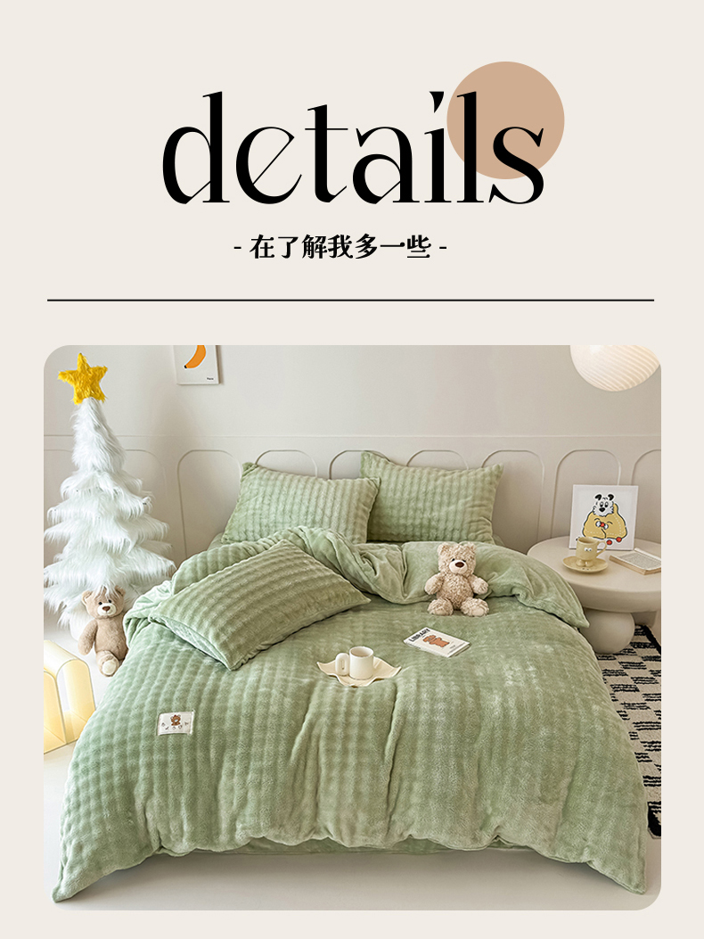 当前位置: 91家纺网 > 商品网购 > 床品套件 > 四件套 > 兔毛绒四件套 > 宜派家纺 2025新款A类简约高克重泡泡兔毛绒四件套 泡泡-茶绿