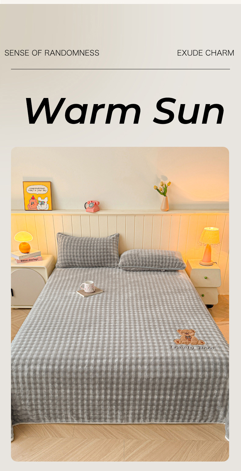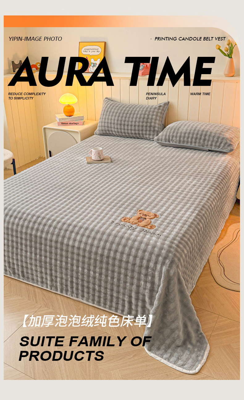 爱思凯家纺 2025新款加厚泡泡绒纯色单品床单单件床单 松饼熊床单-灰