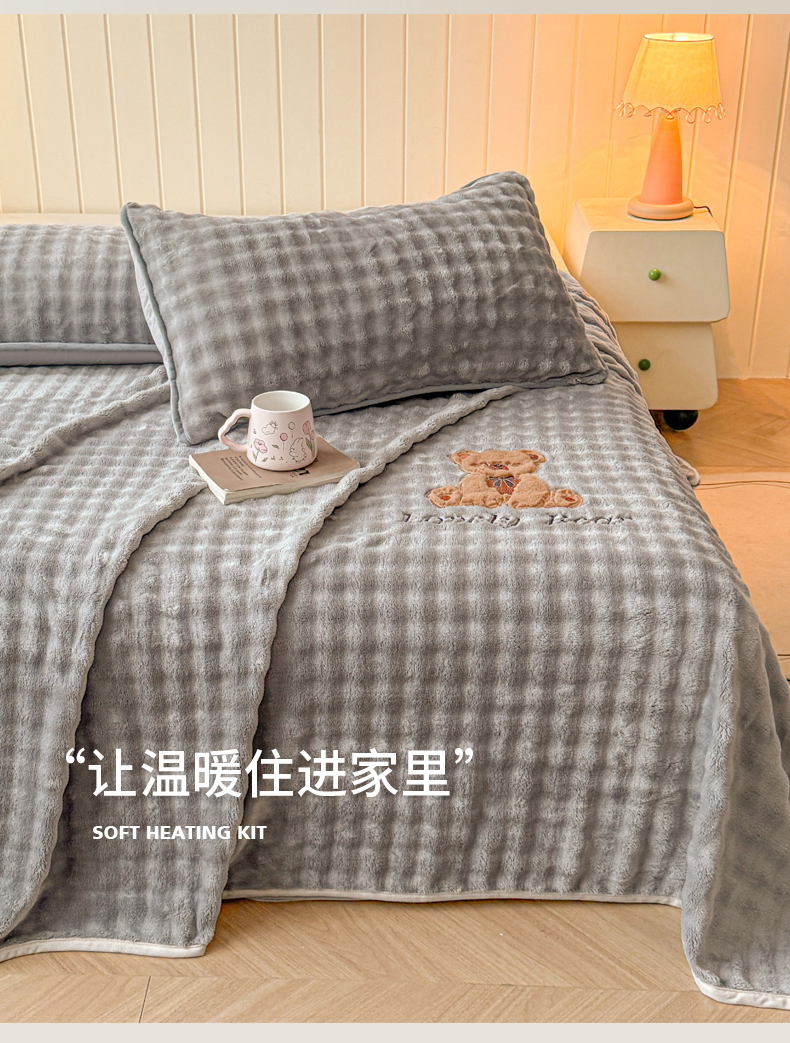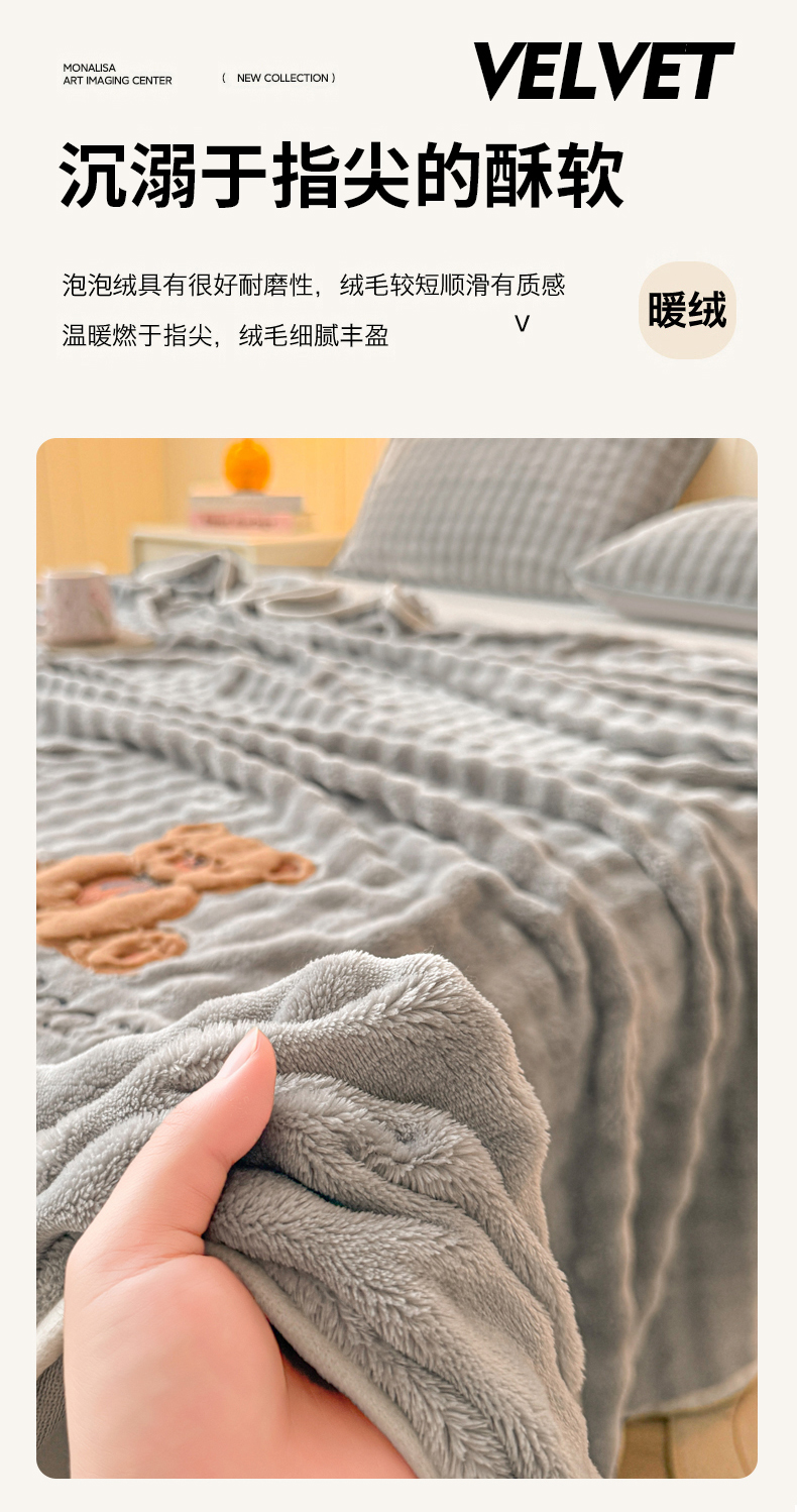 • 91家纺网 家纺一手货源 找家纺 爱思凯家纺 2025新款加厚泡泡绒纯色单品床单单件床单 松饼熊床单-灰