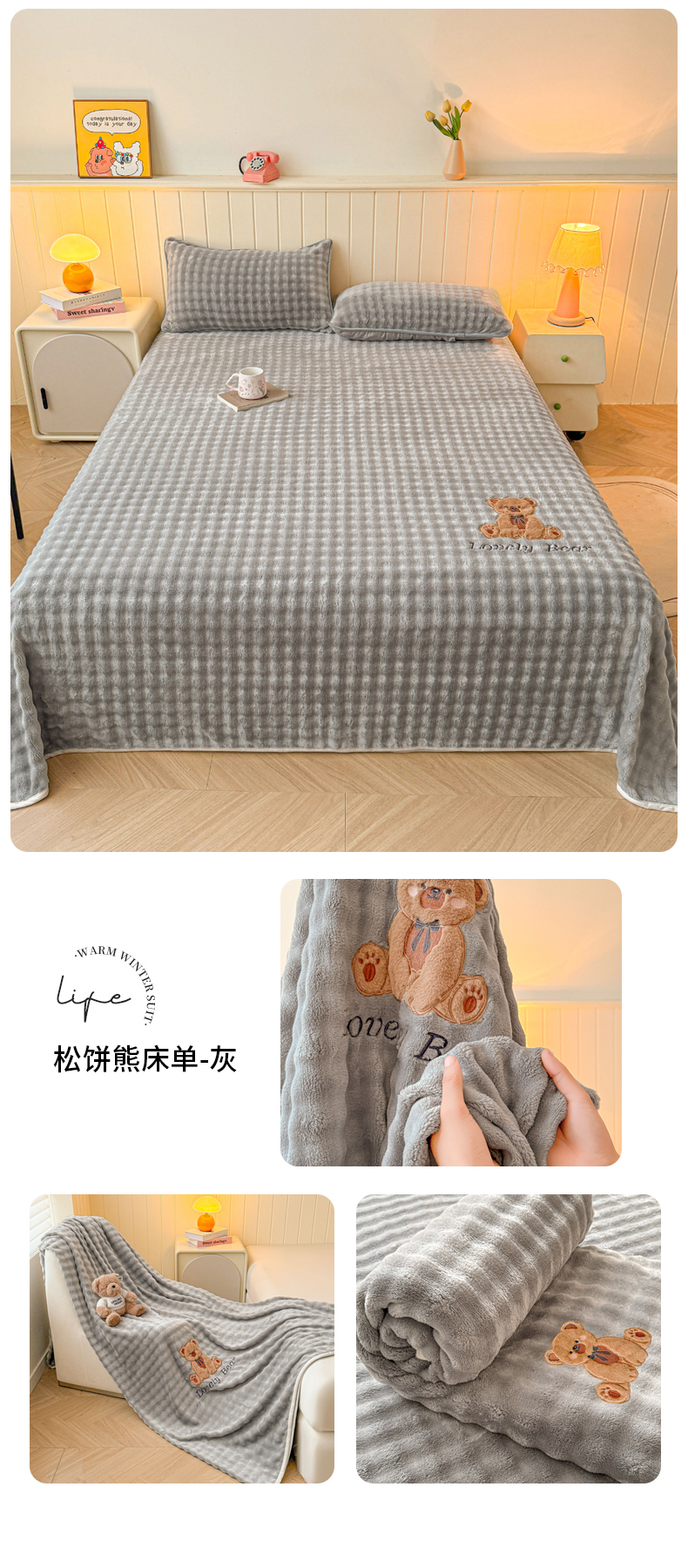 当前位置: 91家纺网 > 商品网购 > 床上用品 > 床单 > 爱思凯家纺 2025新款加厚泡泡绒纯色单品床单单件床单 松饼熊床单-灰