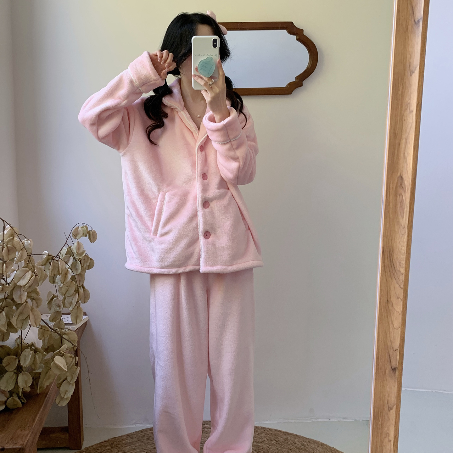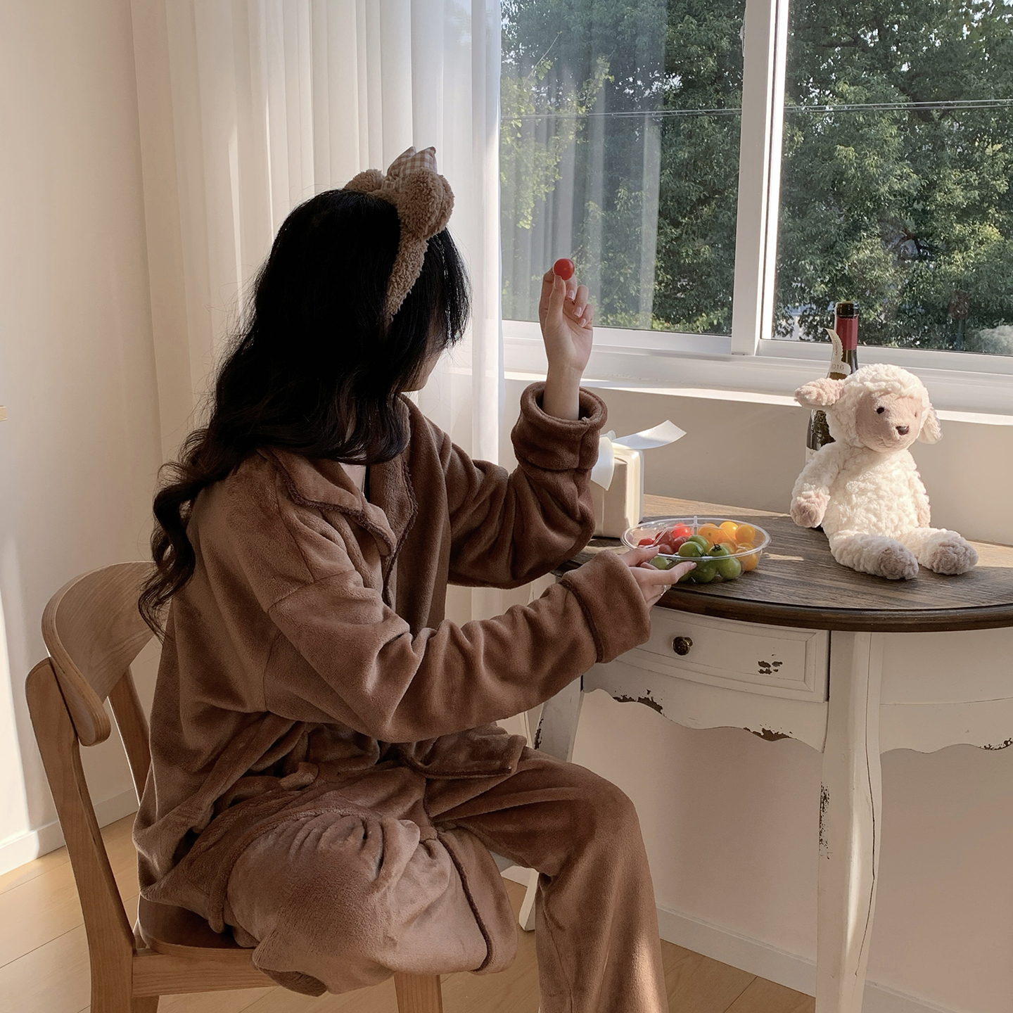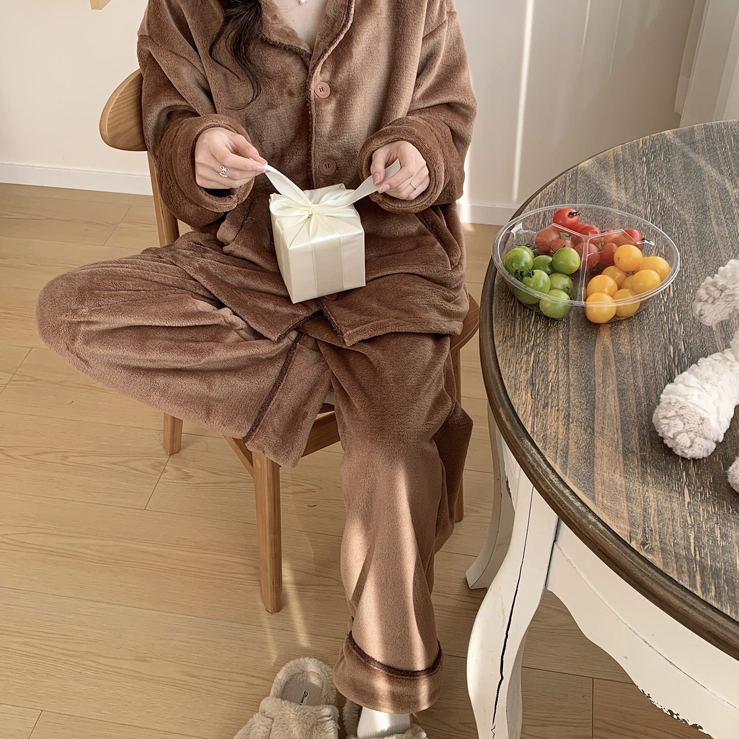 (总)多乐娜 2025新款出口日单高定款半边绒家居服重量高达1600g高级出口品质非市面普货(控价!请不要低于165元销售!!!!!),暖棕色,青奈色
