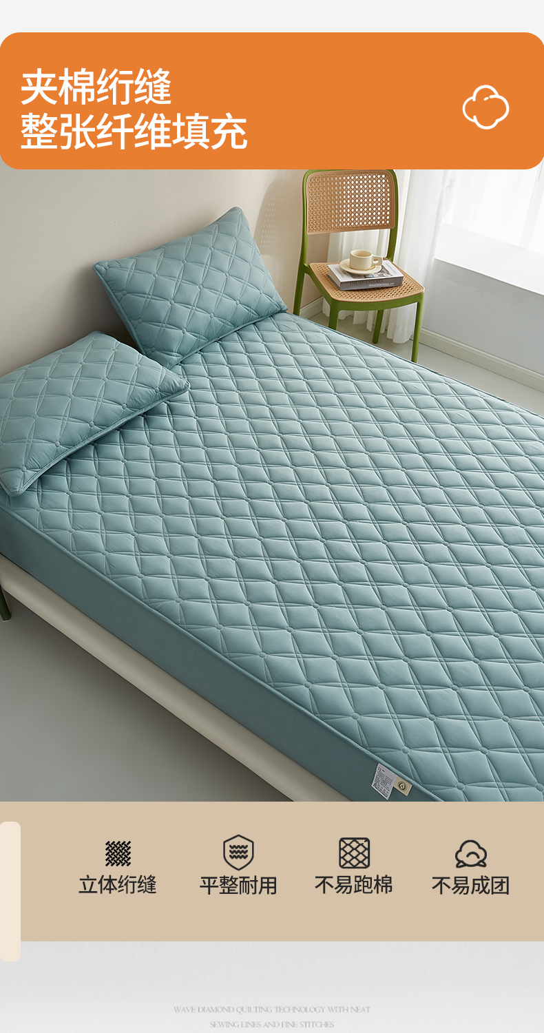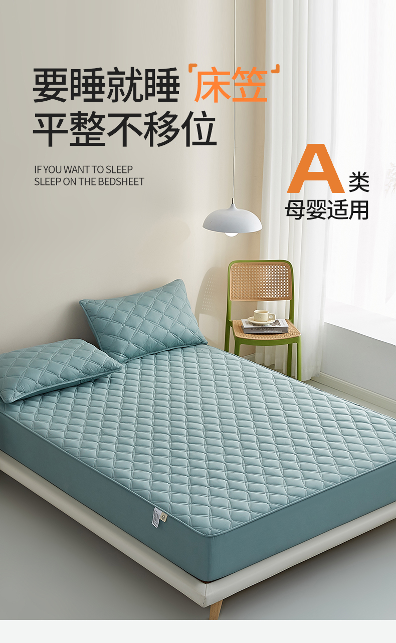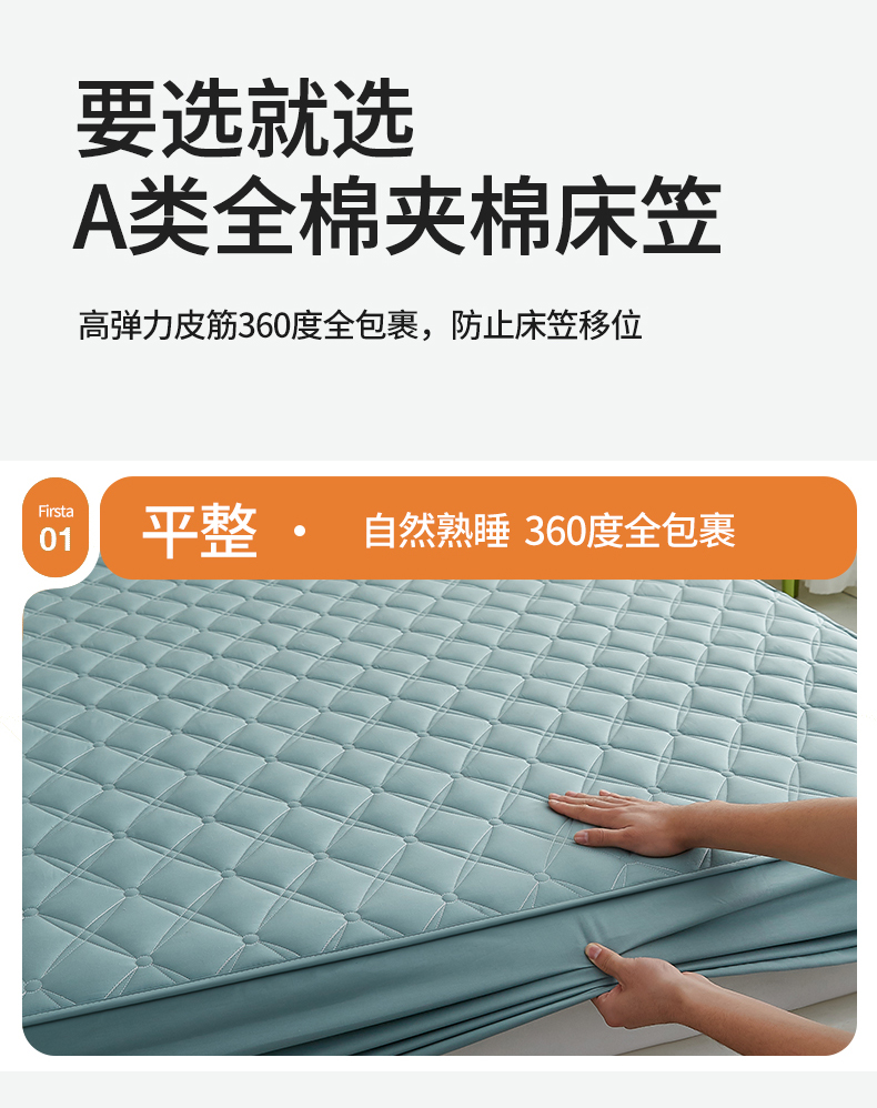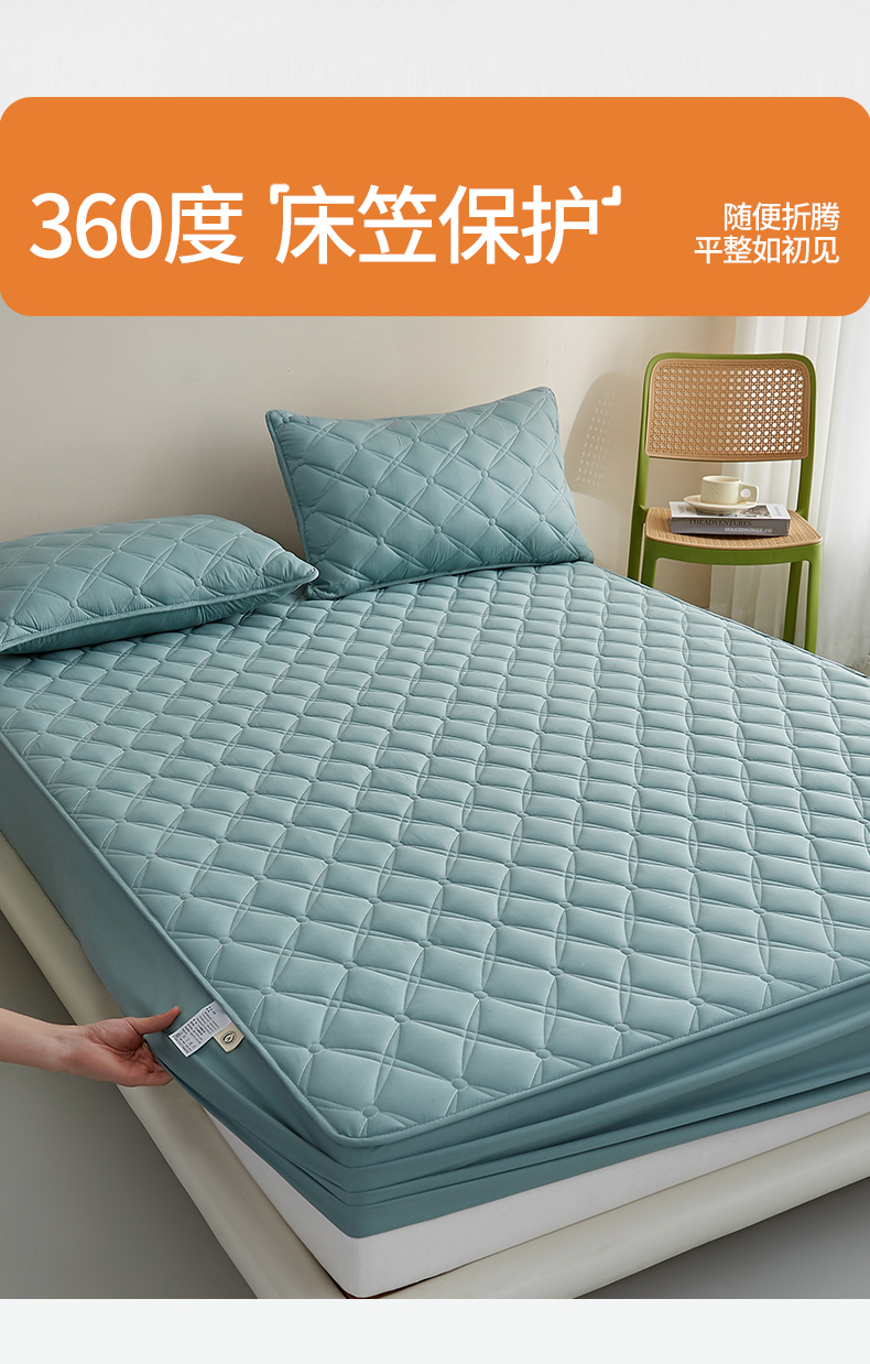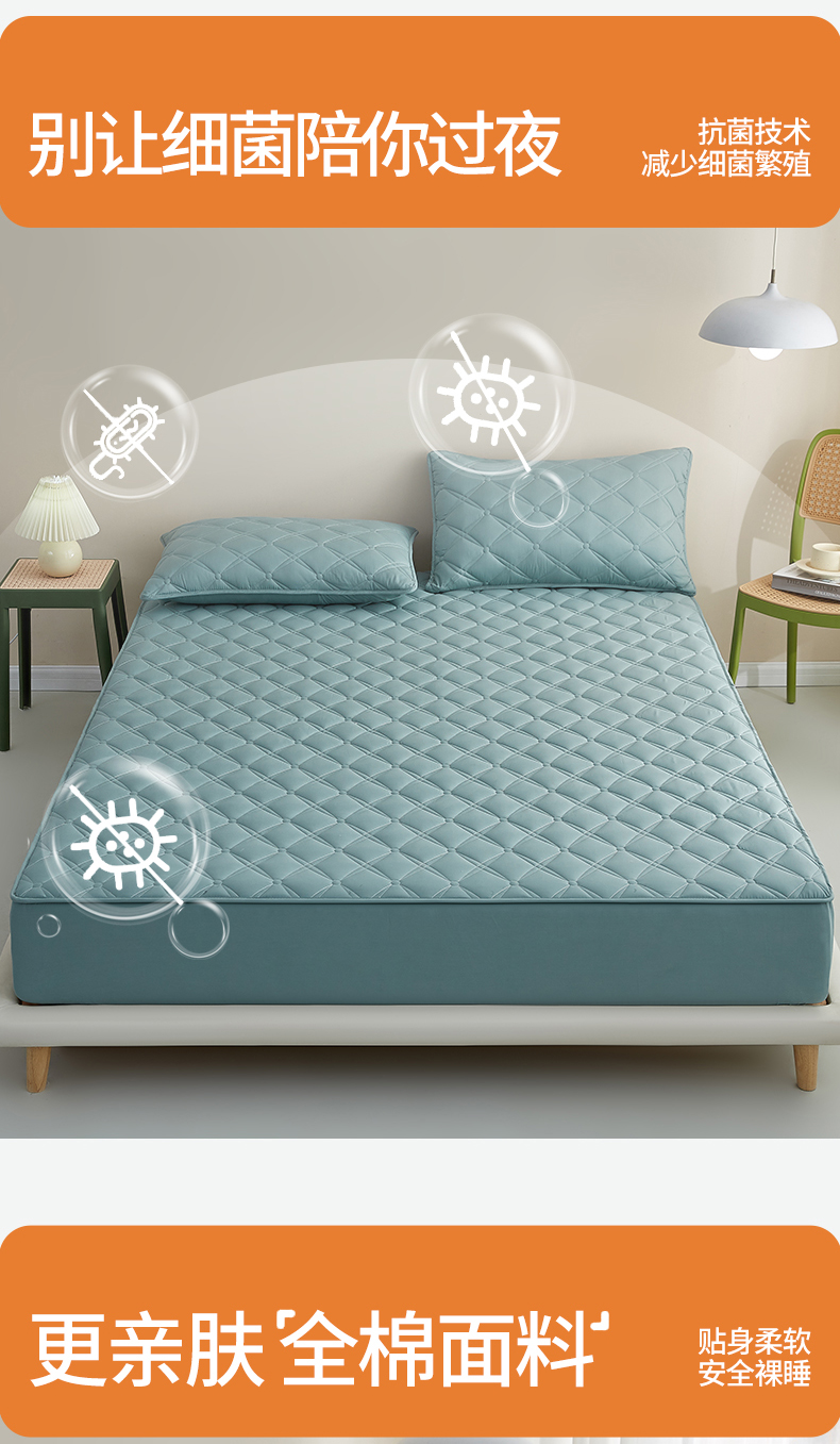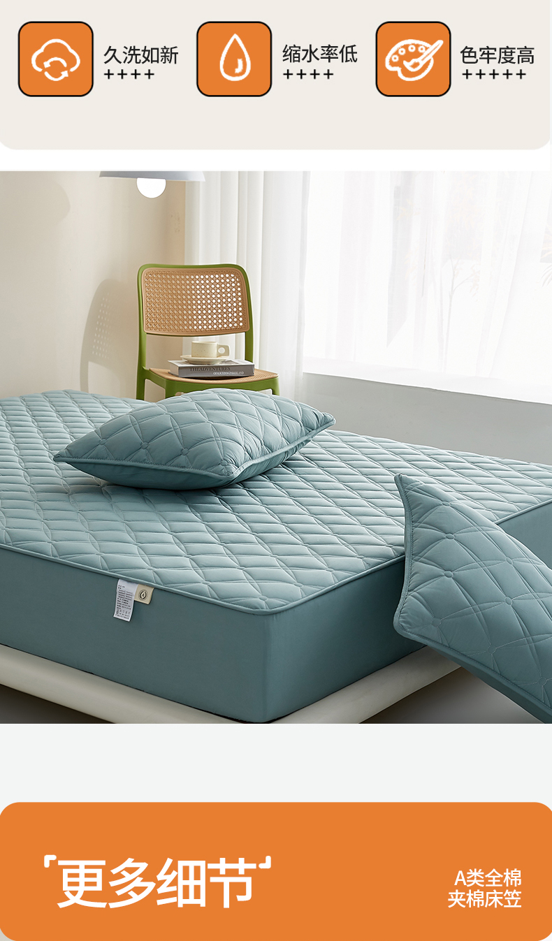 红淳家纺 2025新款A类抗菌全棉夹棉轻奢款床笠单品床笠床笠单件 全棉轻奢-天青
