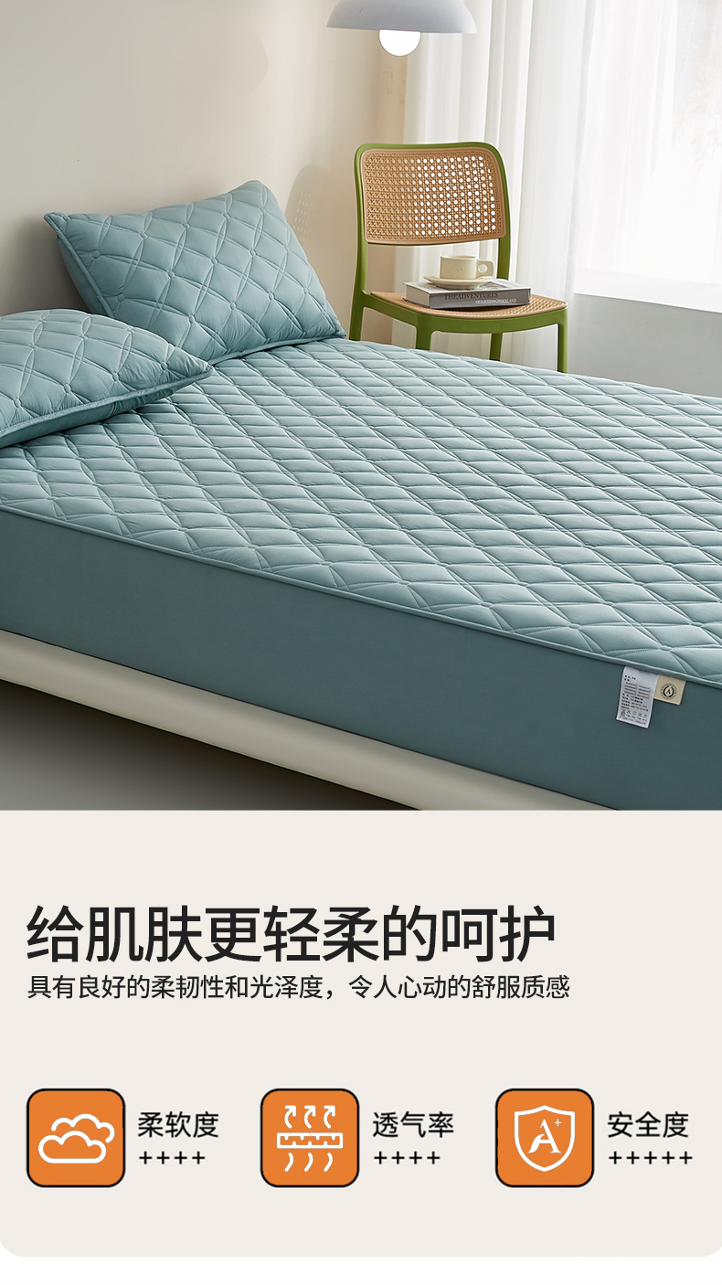 商品名称:红淳家纺 2025新款A类抗菌全棉夹棉轻奢款床笠单品床笠床笠单件 全棉轻奢-天青