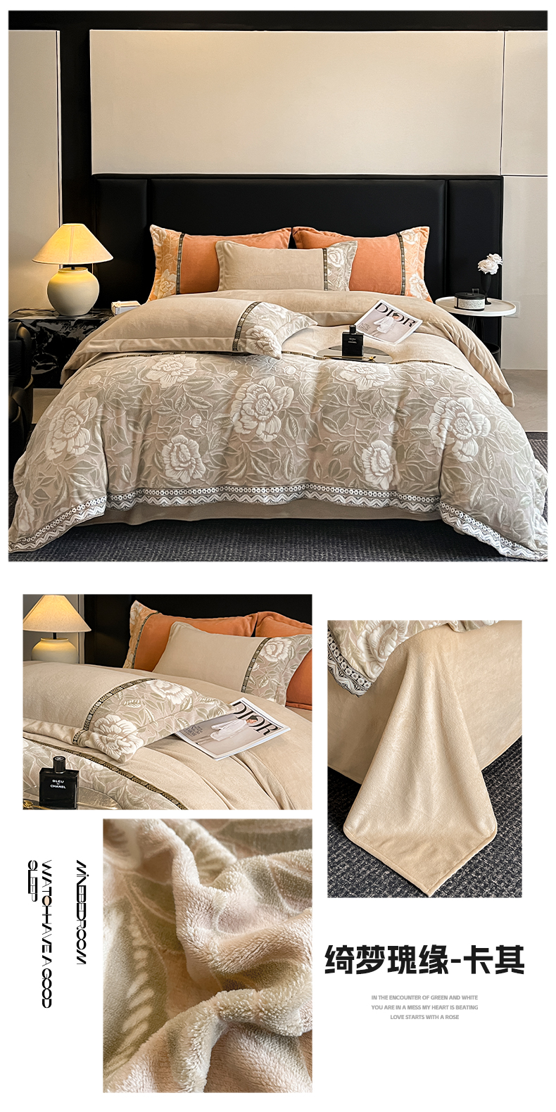 当前位置: 91家纺网 > 商品网购 > 床品套件 > 四件套 > 牛奶绒四件套 > 帝王家纺 2025新款刺绣雕花加厚保暖牛奶绒四件套冬季珊瑚绒 控价: 淘宝标准¥208,小号¥178.拼多多标准¥168,小号¥138. (谢谢配合) 花容月貌-白色