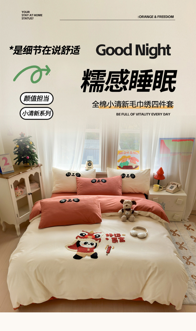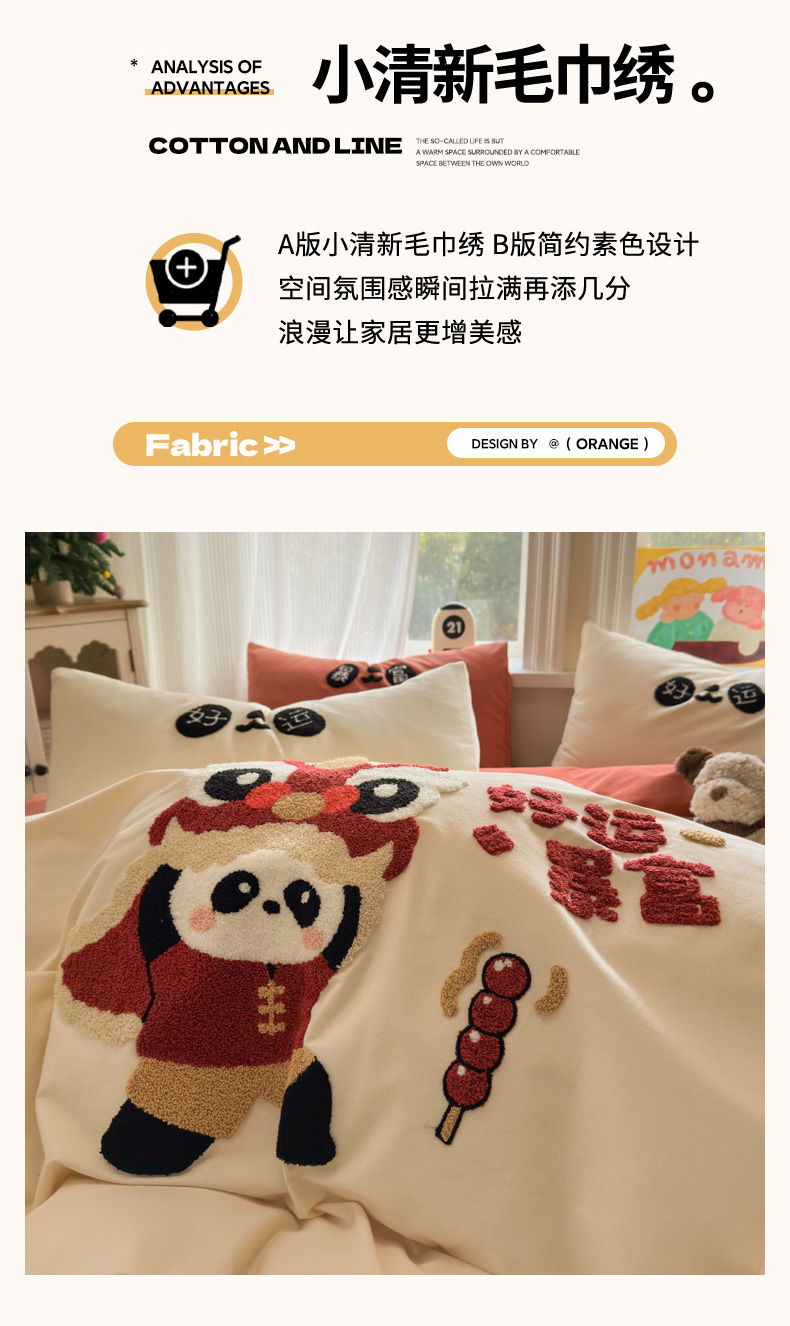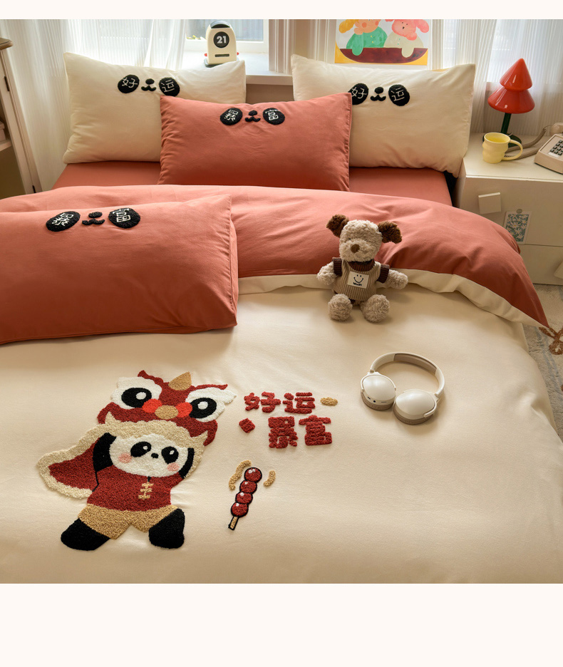 当前位置: 91家纺网 > 商品网购 > 床品套件 > 四件套 > 全棉普通四件套 > 如意朵 2025新款全棉加厚磨毛绣花四件套风格二(专版花型) 狮来运转