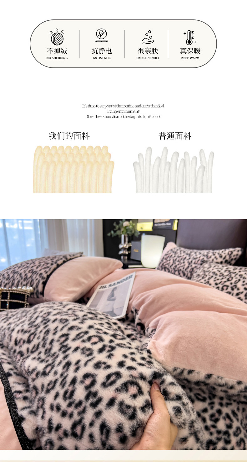 (总)九花鹿 2025新款丹麦皮草绒水貂绒四件套,豹纹-粉,豹纹-灰,豹纹-咖