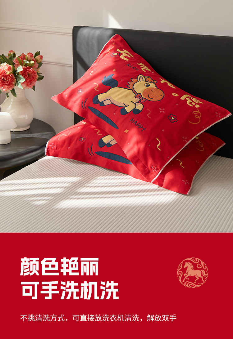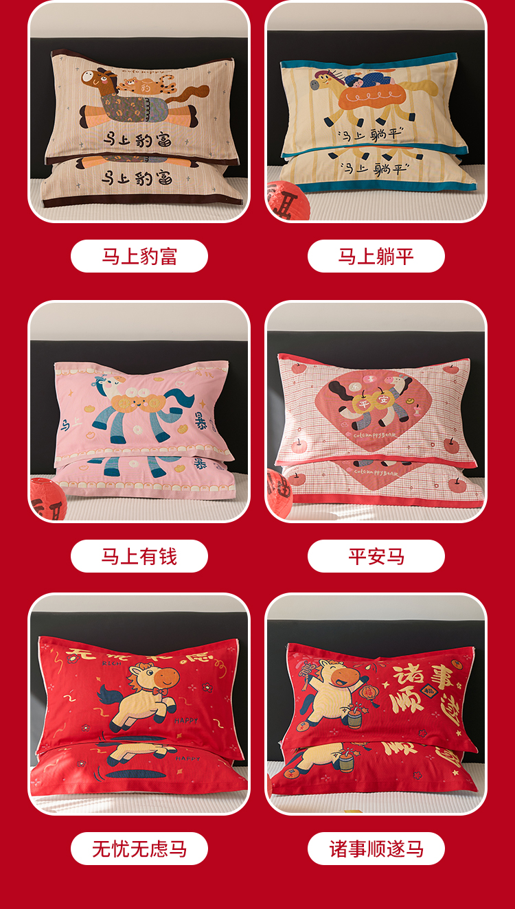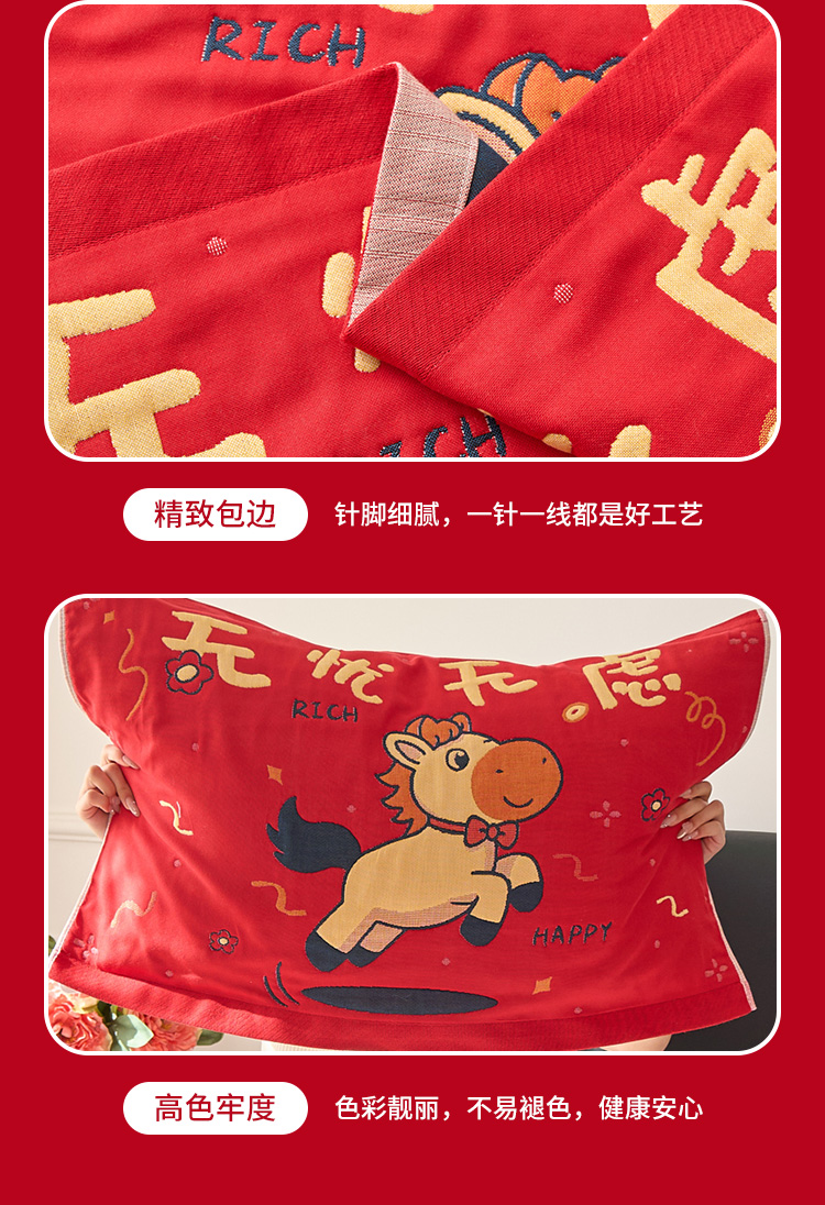 商品名称:沐瑟家纺 2026新款纯棉八层枕巾-马 无忧无虑马