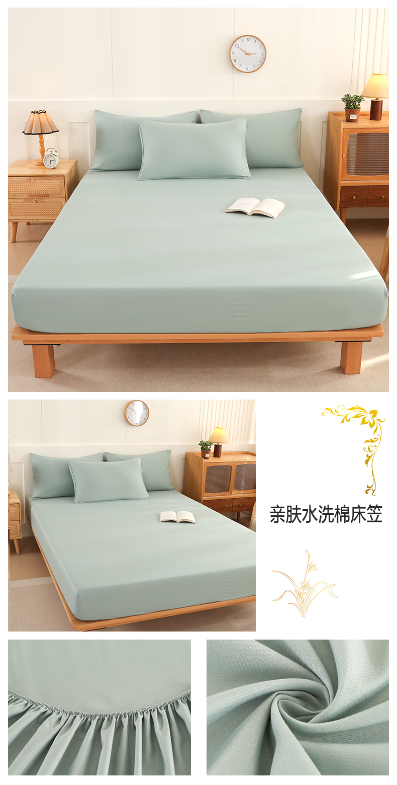 (总)优纤家纺 2025新款亲肤水洗棉床笠系列,卡其,纯白,豆沙,墨绿,牛仔蓝,浅灰,深灰,天蓝