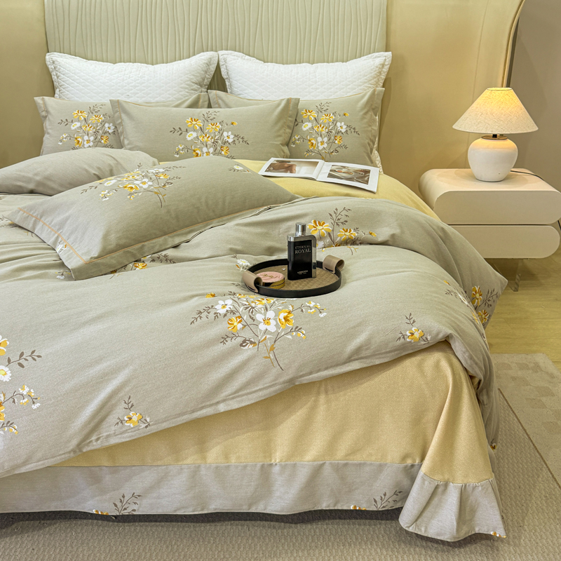 凌鼎 2025新款喷气加厚磨毛四件套系列1 望夏花艺咖,望夏花艺咖