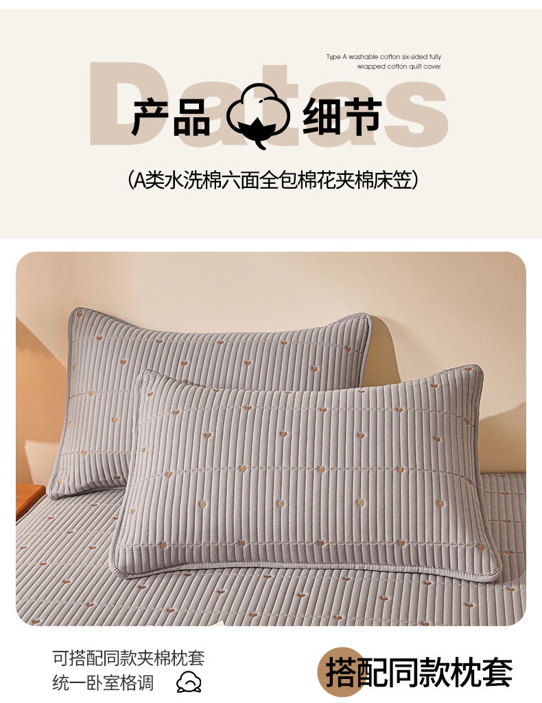 (总)伊人坊 2025新款A类全棉纯棉100s夹棉床笠,砂糖粉,星辰灰