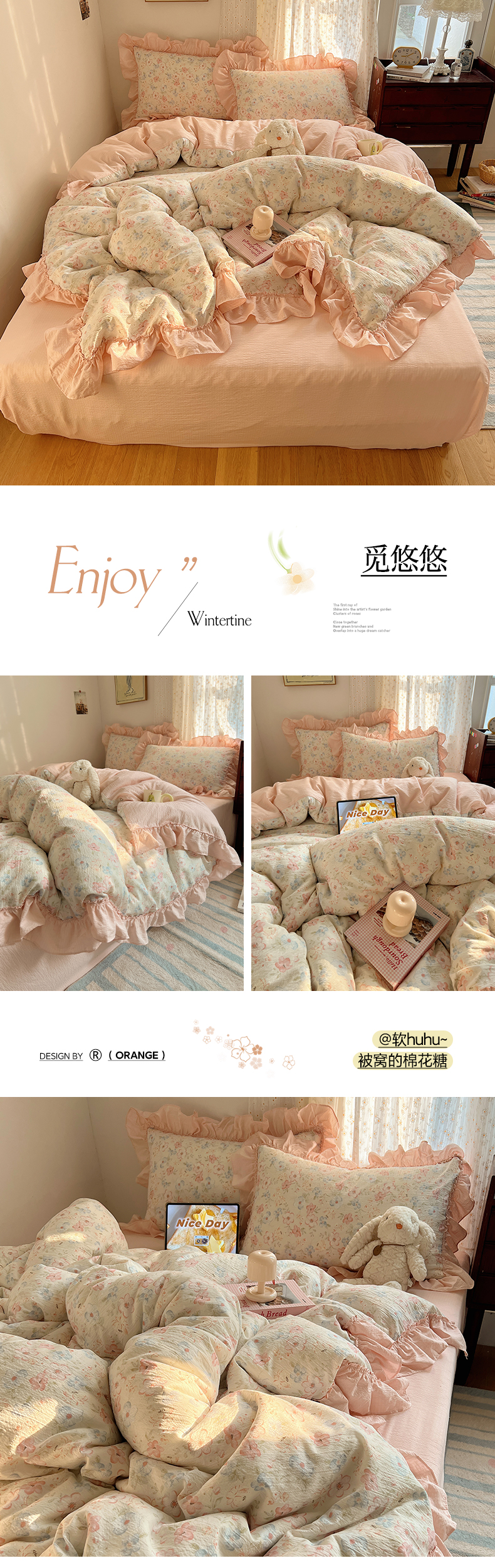 商品名称:美乐迪家纺 2026新款法式云感双层纱花边四件套 觅悠悠