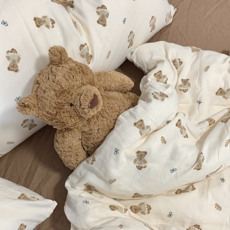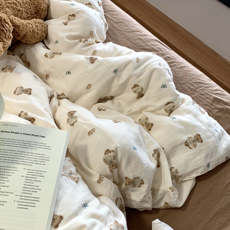 商品名称:源启生活 2025新款A类全棉双层纱四件套 熊小姐