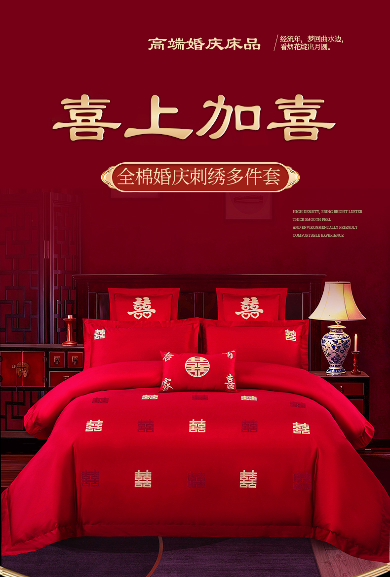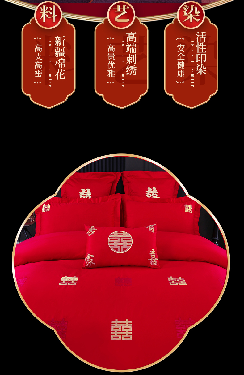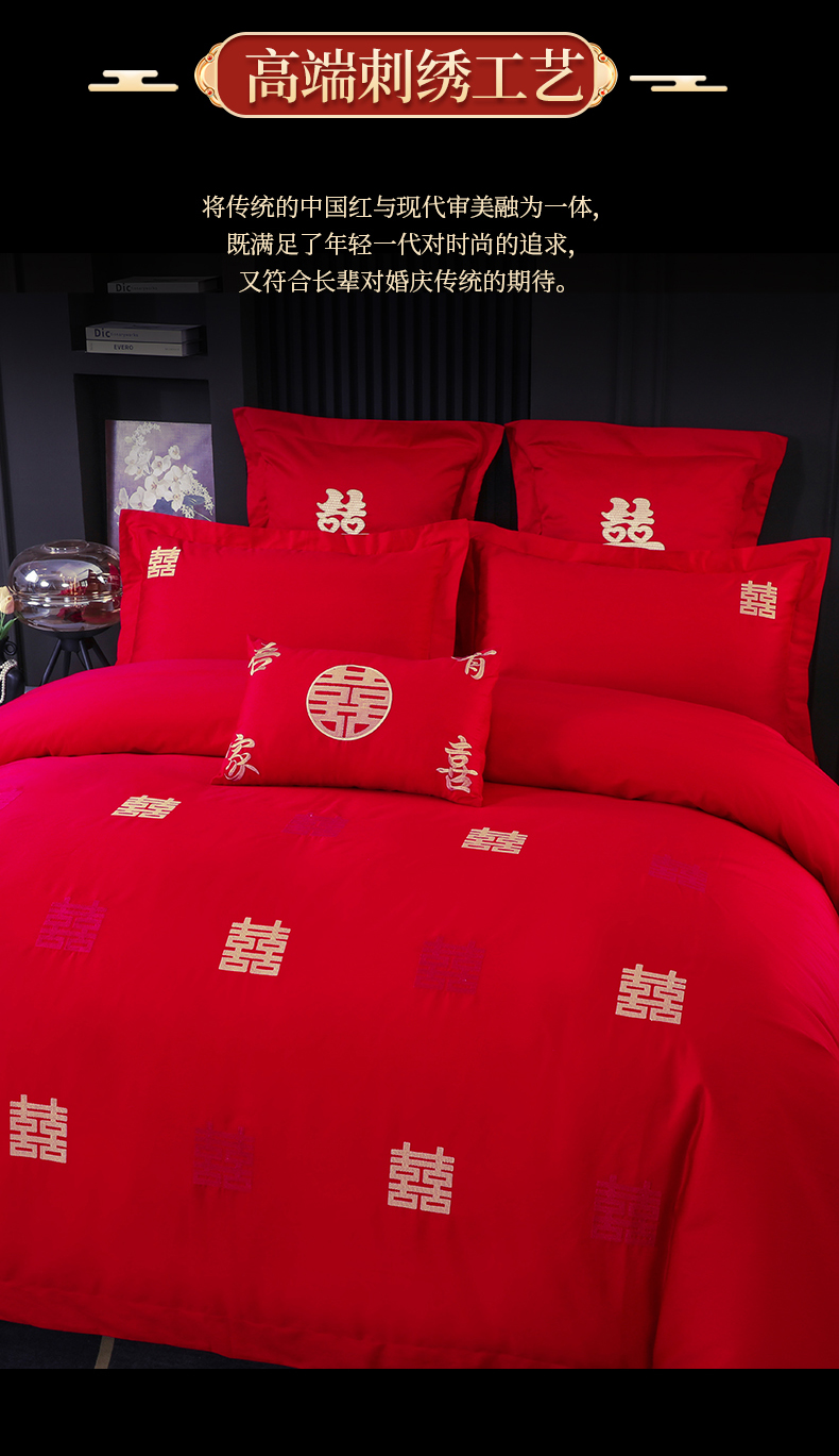 当前位置: 91家纺网 > 商品网购 > 床品套件 > 四件套 > 婚庆四件套 > 浩情国际婚庆供货中心 2026新款100%全棉长绒棉纯棉婚庆四件套结婚刺绣六件套多件套长期供货 喜上加喜