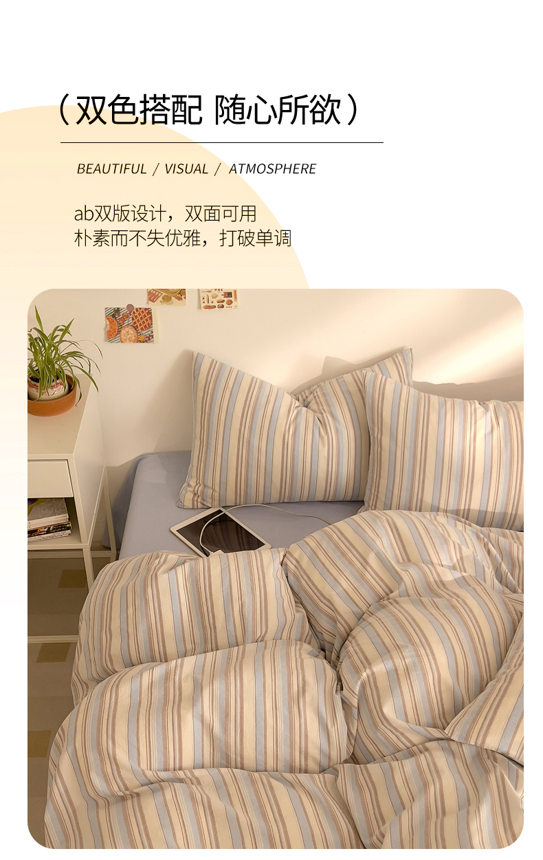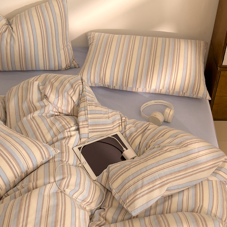 当前位置: 91家纺网 > 商品网购 > 床品套件 > 四件套 > 全棉普通四件套 > DoDo 兜兜 2026新款全棉纯棉A类条格水洗棉四件套-可定做尺寸 左岸-蓝