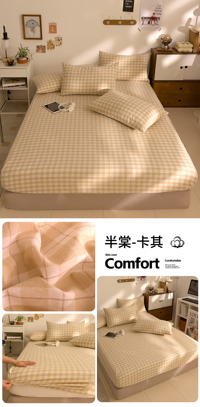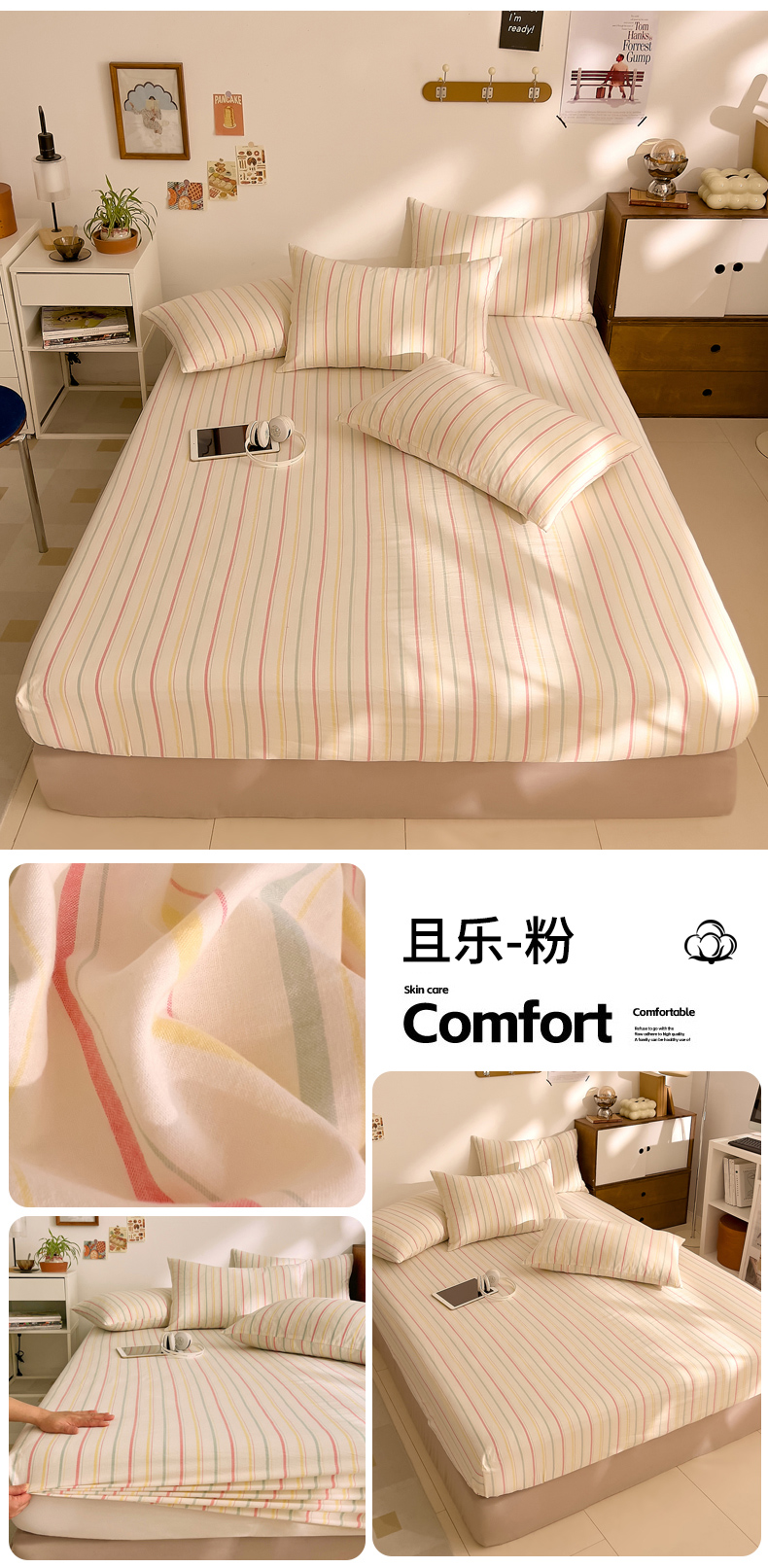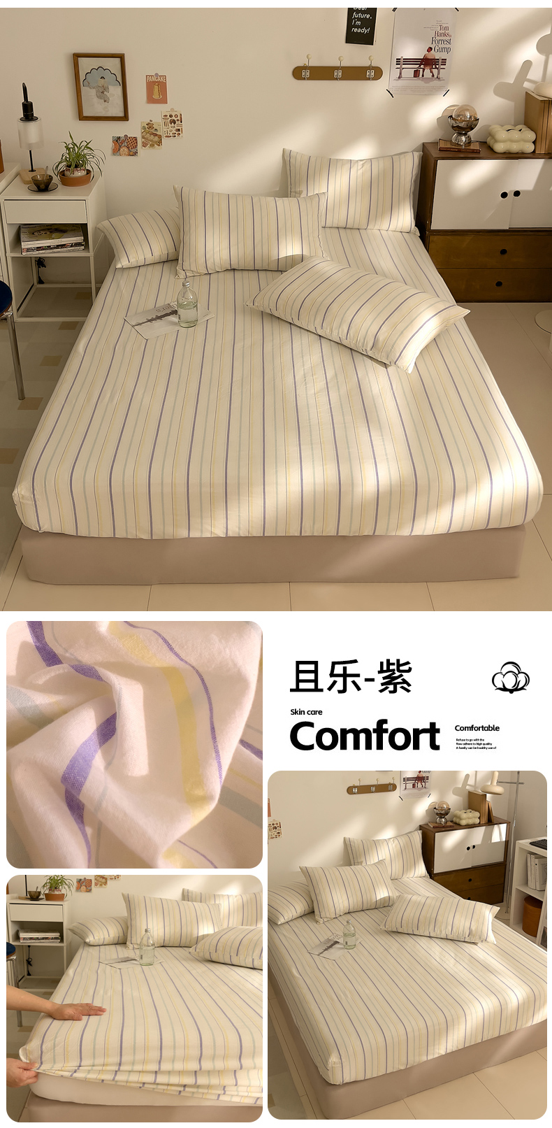 • 91家纺网 家纺一手货源 找家纺 DoDo 兜兜 2026新款全棉纯棉A类条格水洗棉单床笠床笠单件-可定做尺寸 组合图(仅供展示不可下单)